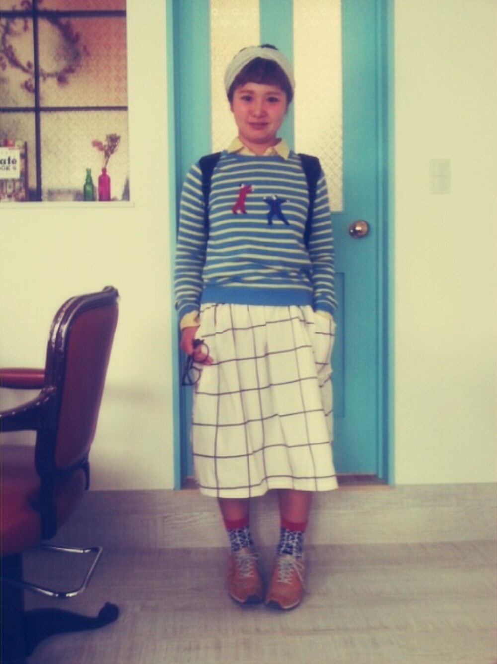 ホワイト系のスカートを着用したレディースの冬コーディネートの1枚目の写真