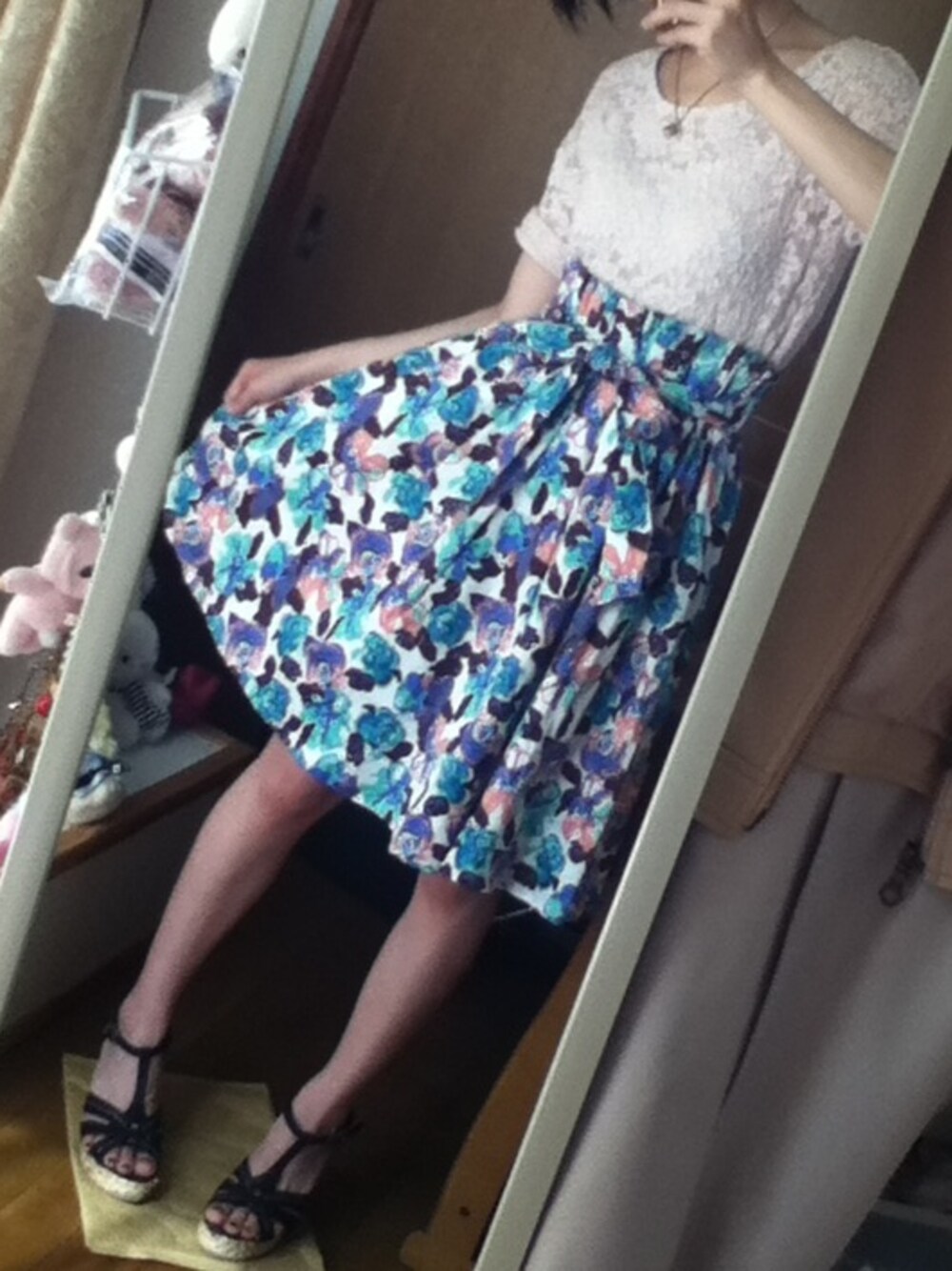 スカートが本当に可愛い\(//∇//)\ 今回は淡いピンクのレーストップスと合わせてみました♪