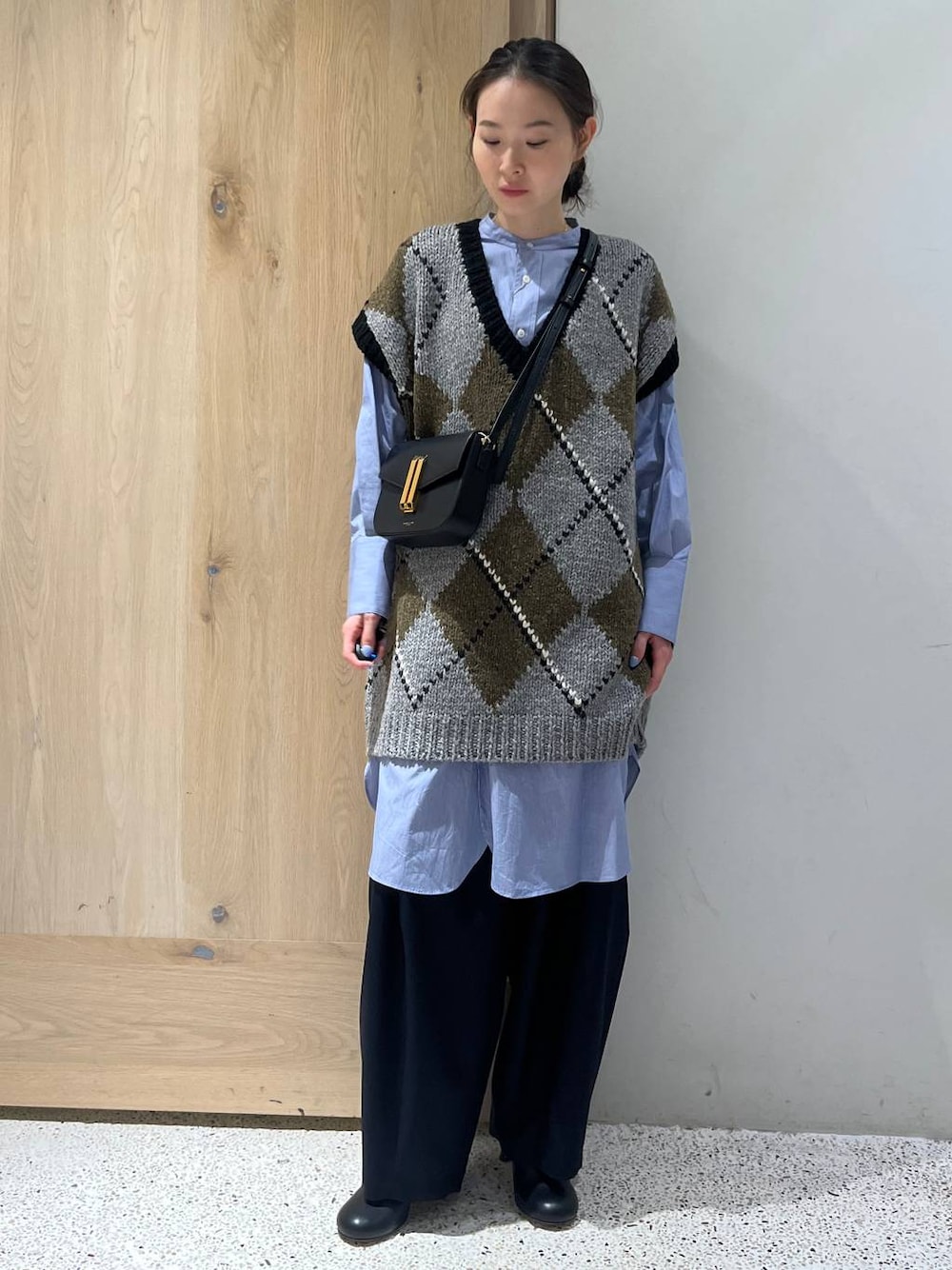 ⭐各アイテムのおすすめポイント  ̄ ̄ ̄ ̄ ̄ ̄ ̄ ̄ ̄ ̄ ̄ ̄ ̄ ̄ ̄ ̄ ̄ 【トップス】 大きめの柄と落ち着いた配色で派手に見えすぎないベスト ゆったりしたサイズ感がラフな雰囲気で素敵 柔らかい生地感でアウターを羽織ってもごわつかないく、着やすいです 【ボトムス】 薄手のウール素材できちんと感があり、通年着用◎なパンツ ボリューミーなシルエットが体型カバーも叶う一本 履くだけでお洒落に見せてくれるデザインです