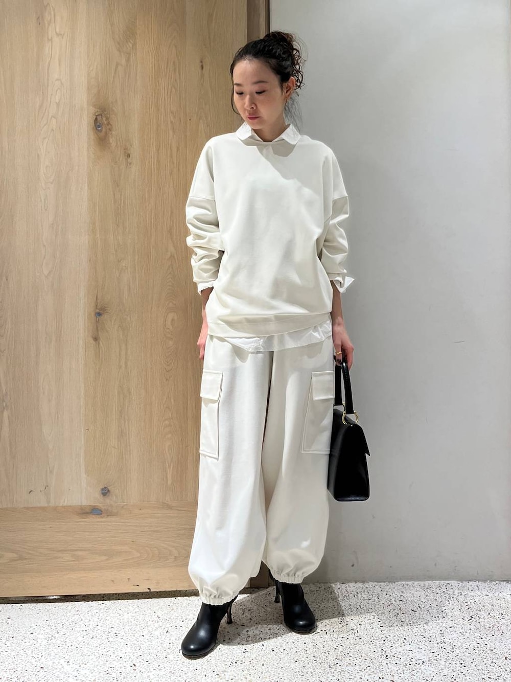 ⭐各アイテムのおすすめポイント  ̄ ̄ ̄ ̄ ̄ ̄ ̄ ̄ ̄ ̄ ̄ ̄ ̄ ̄ ̄ ̄ ̄ 【トップス】 ストレッチ性が高くらくちんなトップス ドルマンスリーブで動きやすく身幅もゆったり 裾は窄まっているのでブラウジングのようにやや短めになります 【ボトムス】 ウエストゴム、ドロスト付きでサイズ調整可能 丈はやや短めで、小柄さんにもおすすめです!落ち感がありスッキリ見えるシルエットできちんと感もあります