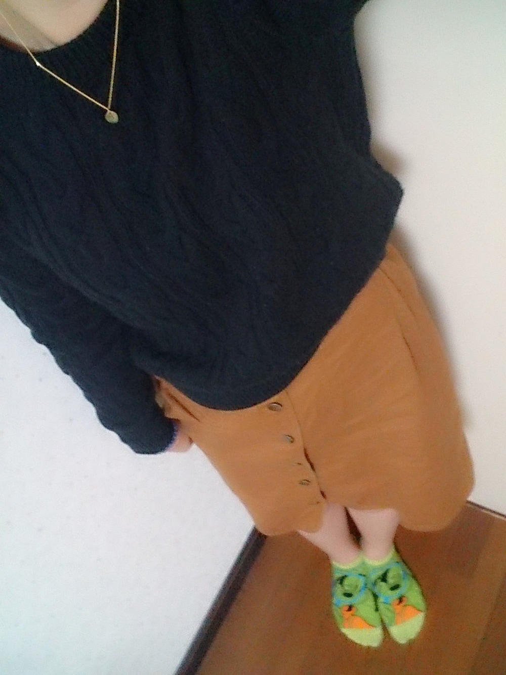 やっと金曜日😃😃😃 そして3連休!!! テンション上がって たまにしか履かないスカート👗 履いちゃいました笑 ボタンスカートかわいいなと思って アウトレットで購入したものです! ニットは控えめな編みこみが気に入ってます