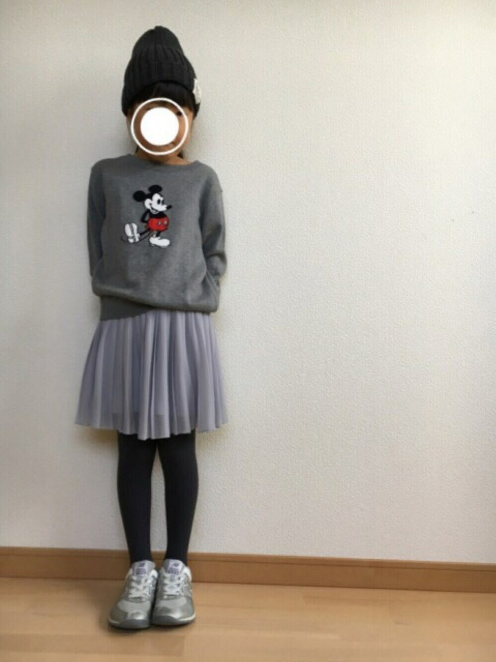 ご覧くださりありがとうございます♬ グレーのワントーンコーデ🌟 ミッキーのニット、どこのユニクロにもなくて諦めてたのに、たまたま行った店舗で発見👀