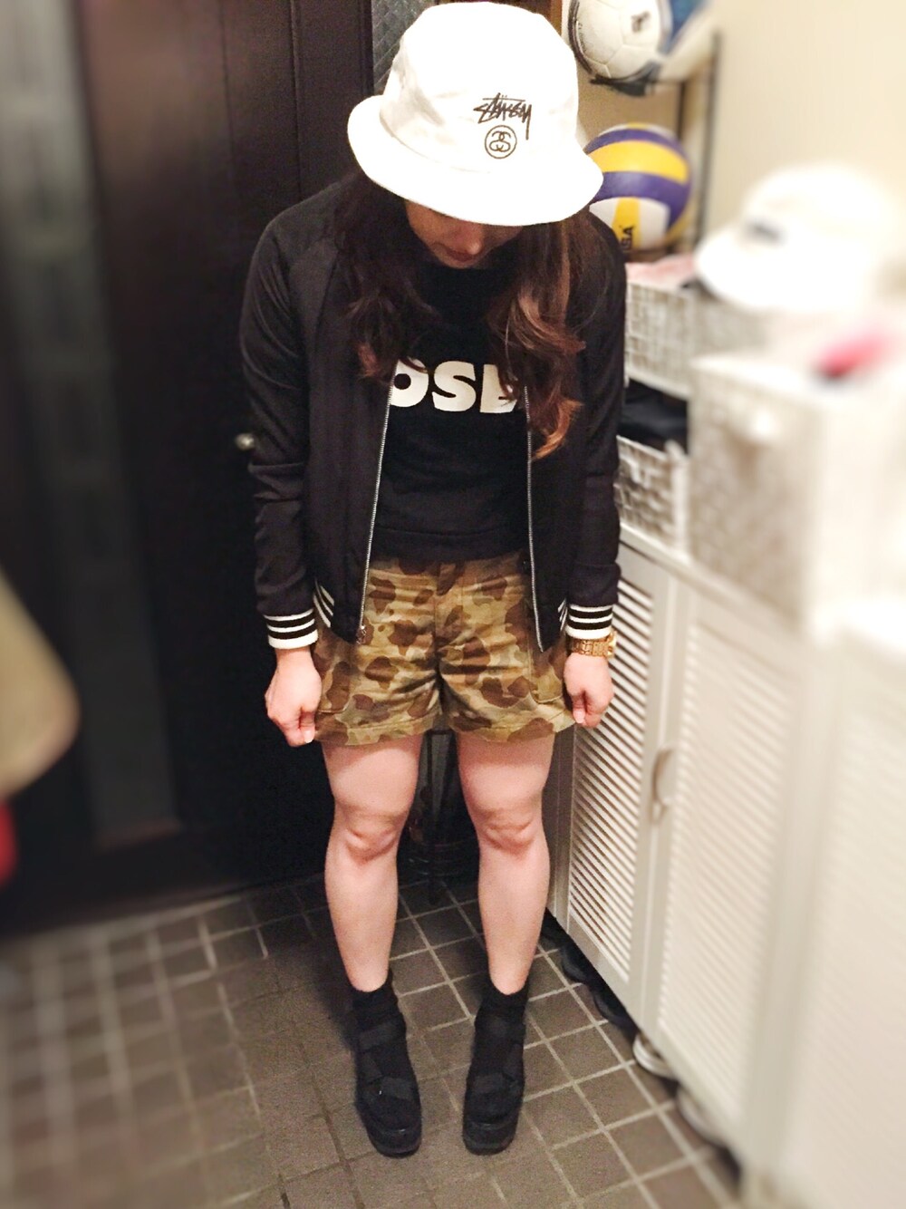 tops:MOUSSY blouson:MOUSSY pants:RNA-SLANG shoes:YRU leg wear:MOUSSY hat:stussy GW最終日、ショートパンツデイ!