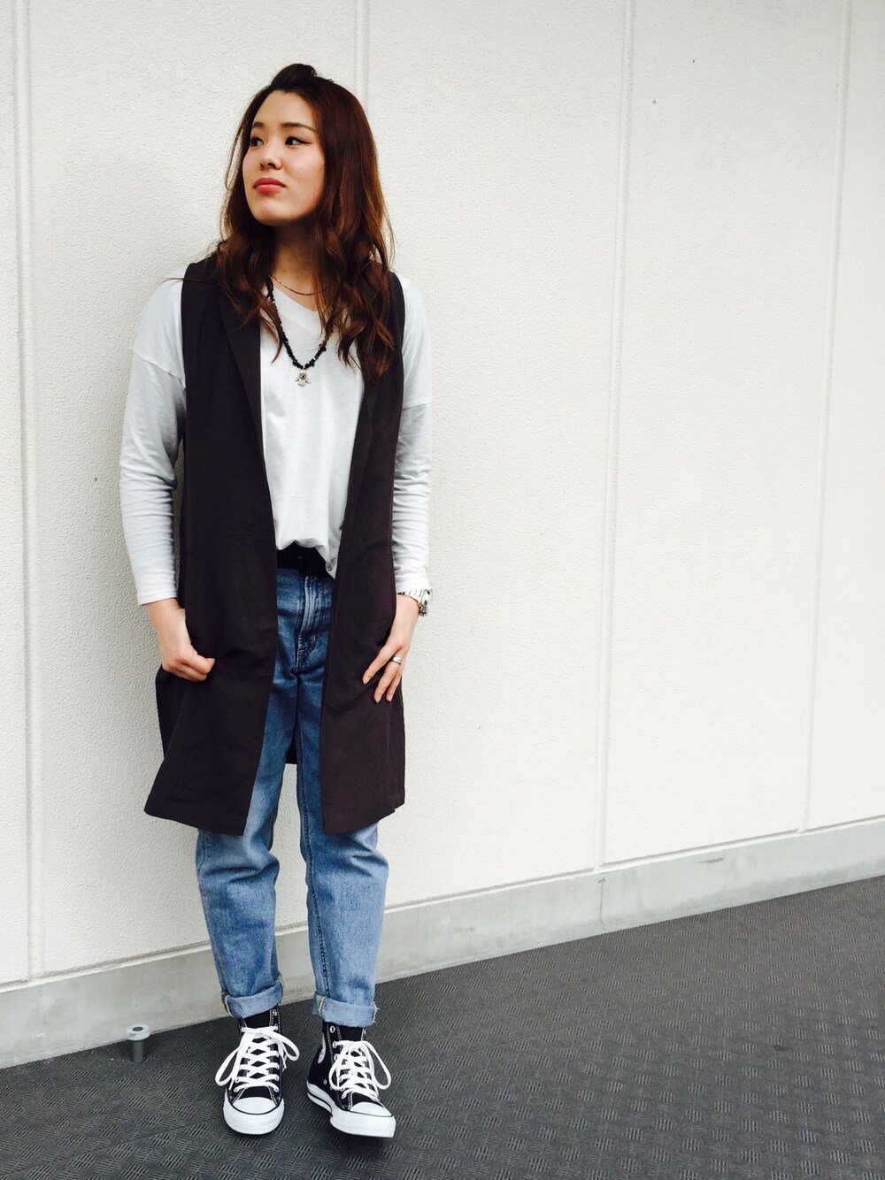 tops:MOUSSY pants:Lee shoes:CONVERSE gilet:RADITATE ジレが着れる季節です♡