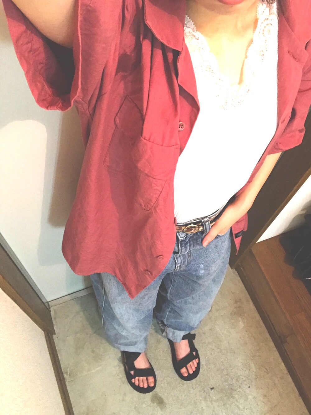 きょうのテーマ:チンピラっぽいふく笑 ふいうちのかなさんの真似して買ったdickiesの開襟シャツとヒョウ柄のベルトでチンピラ感出しました😎 白のレースインナーでちょっと女子感🌷 あ〜お洋服選ぶのって楽しい🌟