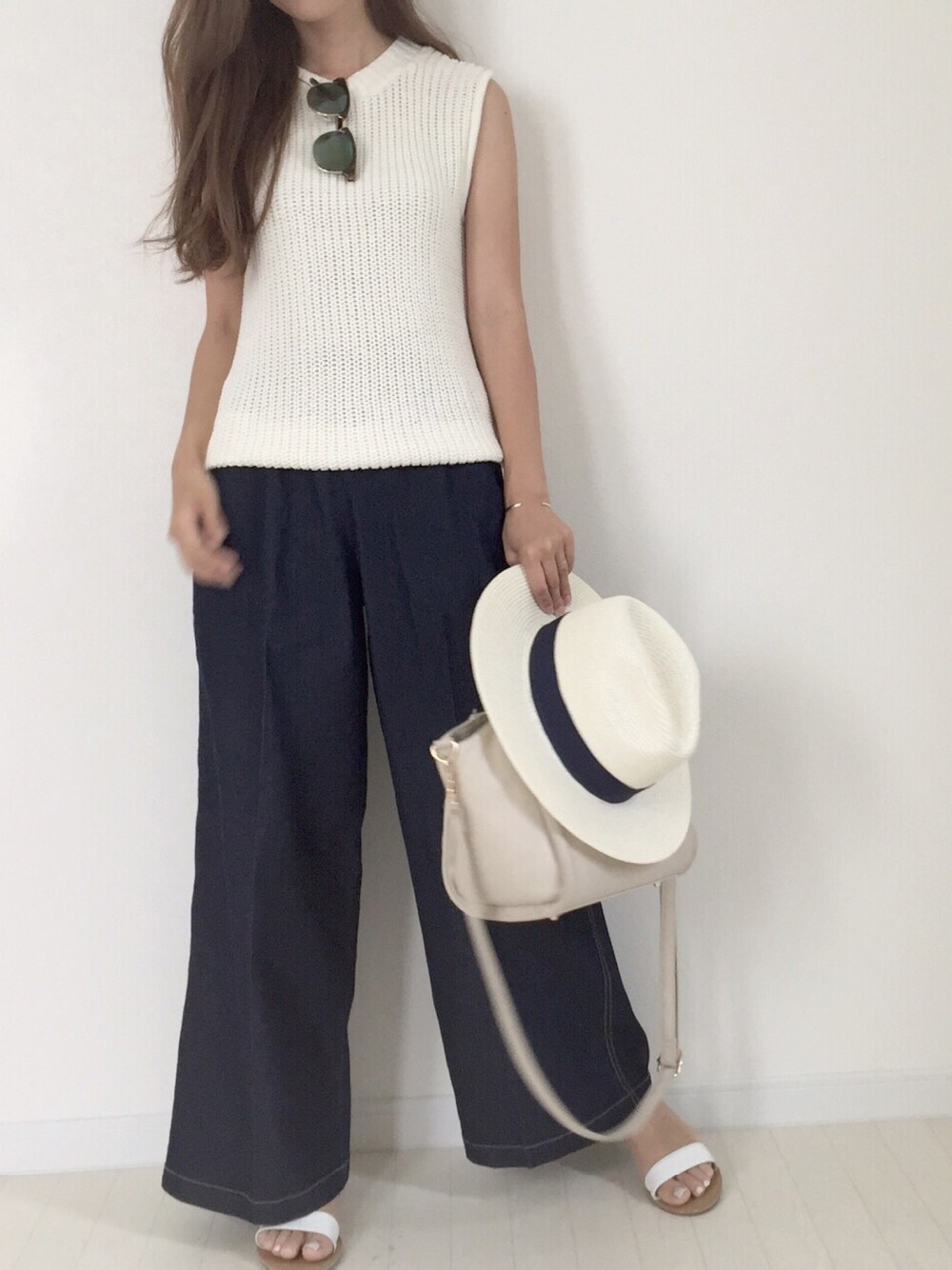 ワイドパンツを使ったコーディネート♡ ペタンコのforever21のサンダルは 可愛いのにら700円♡ 履きやすいしオススメです♡