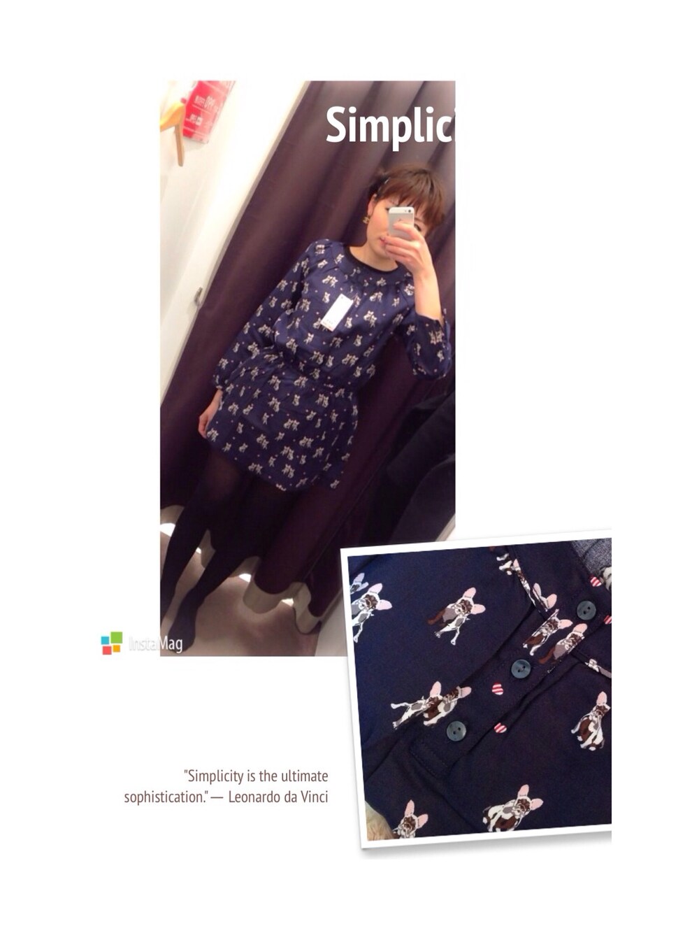 UNIQLOのキッズサイズのワンピース、柄がフレンチブルで可愛かったので試着してみたら入ったから購入〜(^ω^)