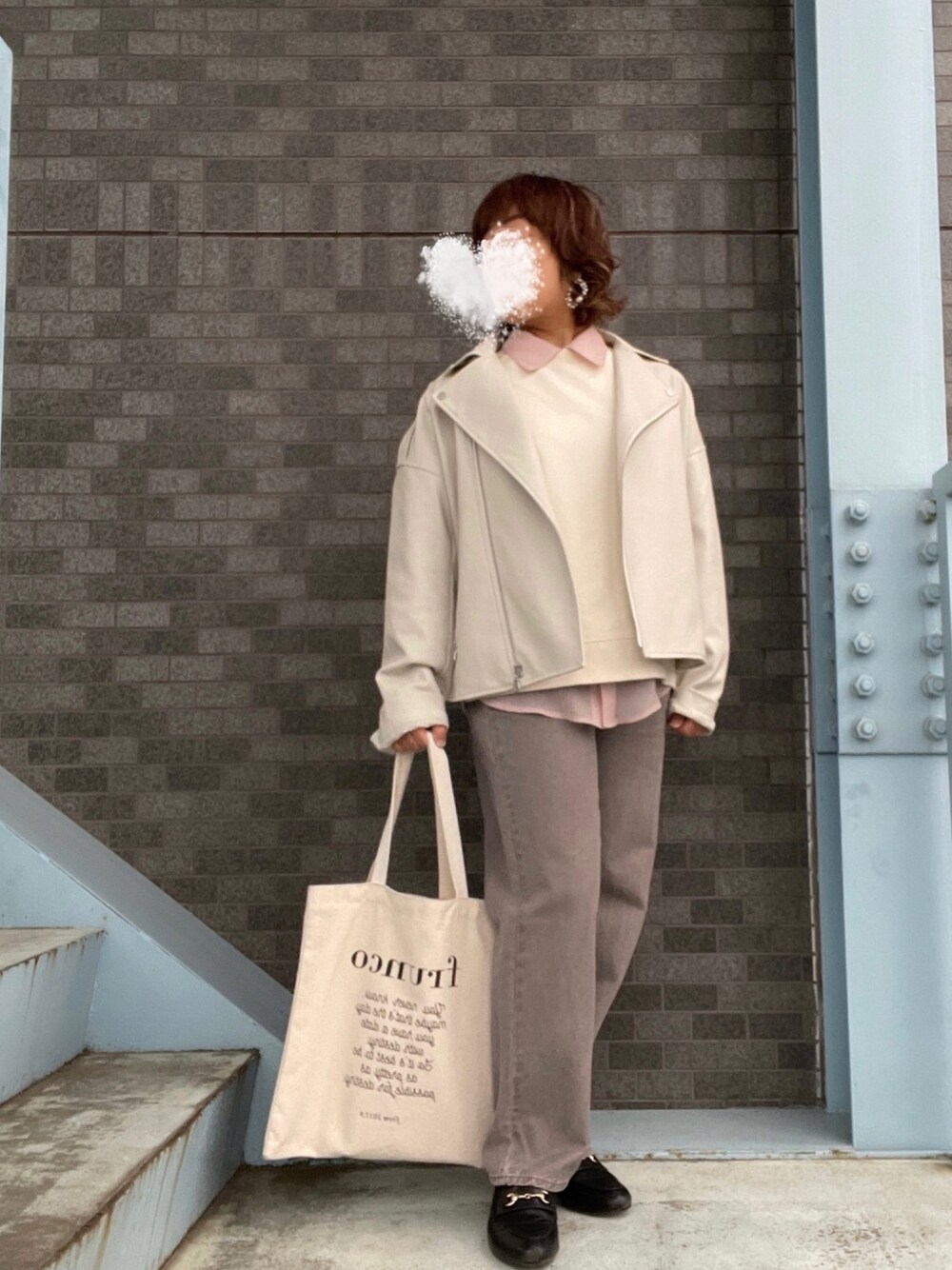 こんにちは♪見ていただき、ありがとうございます! いいね、お気に入り、フォロー、とってもうれしいです♪ pinkrubyさん✨raikiさん✨前回のコーデをフォルダインしていただきありがとうございます😊 3月7日 ☁️10℃/5℃。 スウェットにシアーシャツをインしました。 イヤリングのほんの一部がイエローだけど、イエロータグ付けるのは忍びない感じ。 白バイカージャケット 白スウェット ピンクシアーシャツ ブラウンデニム 黒ローファー 白トートバッグ パールイヤリングを合わせました。