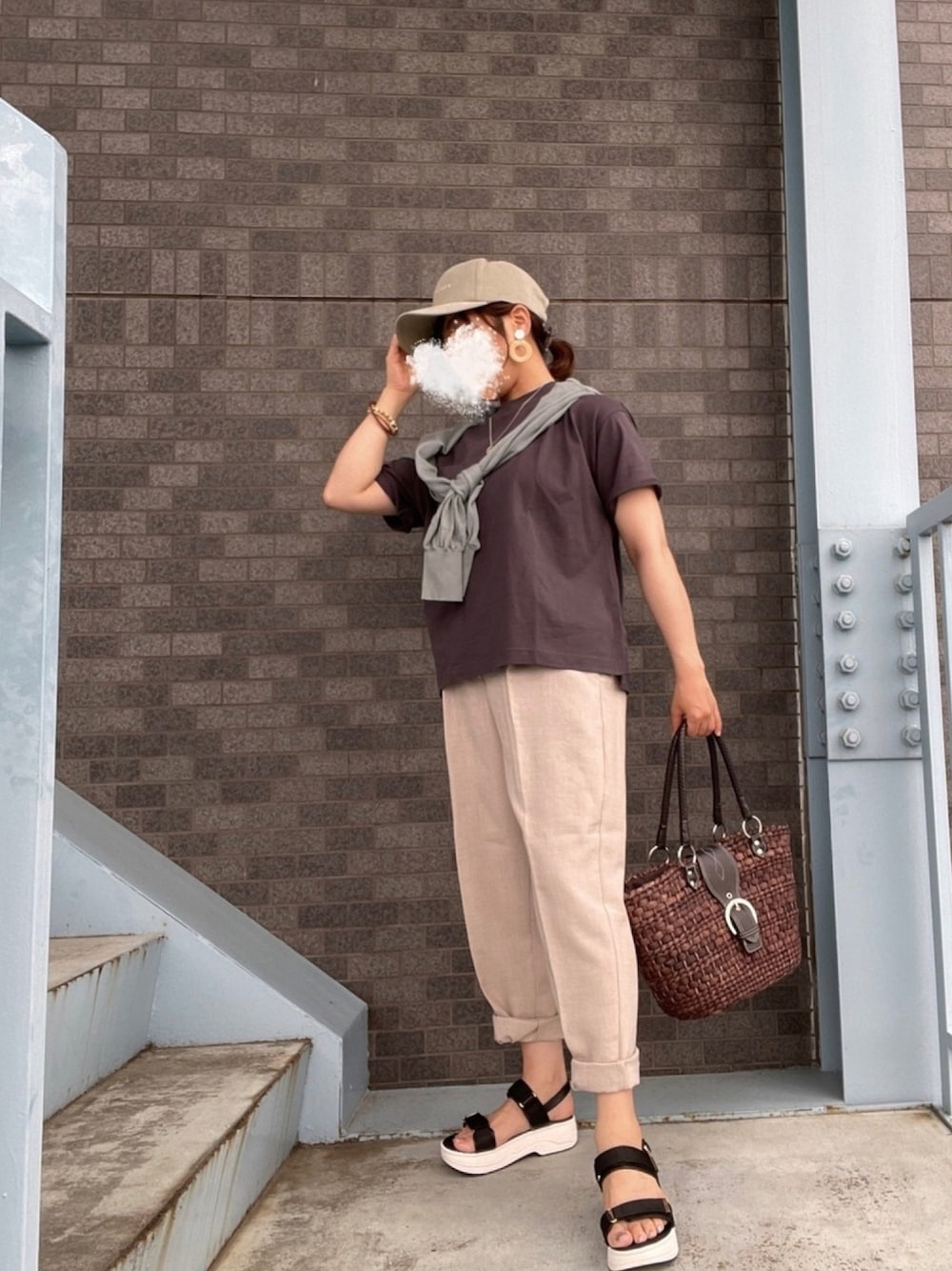 こんばんは♪見ていただき、ありがとうございます! いいね、お気に入り、フォロー、とってもうれしいです♪ raikiさん✨いくしまさん✨前回のコーデをフォルダインしていただきありがとうございます😊 5月28日 ⛅️26℃/14℃。 仲良くしていただいてる葉月さんのコーデがカッコよかったので勝手に真似っこしました。 雰囲気が伝わればうれしいです😊 アウターの代わりにシアーカーディガンを合わせてみました。 カーキシアーカーディガン スミクロTシャツ ベージュテーパードパンツ 黒厚底サンダル カーキロゴキャップ ブラウンかごバッグ ウッドブレスレット重ね付け シルバーコインネックレス シルバー×ベージュラタンイヤリングを合わせました。