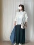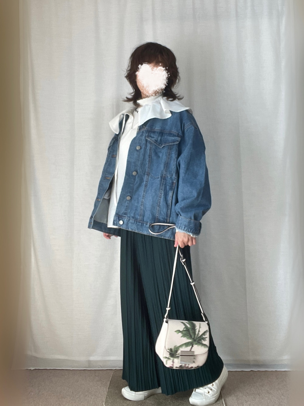 こんばんは♪見ていただき、ありがとうございます! いいね、お気に入り、フォロー、とってもうれしいです♪ 前回のコーデをフォルダインしていただきありがとうございます😊 mic@さん✨ ひろ★さん✨ くーたろさん✨ MR.Mさん✨ 3月30日 ⛅️20℃/8℃。 暖かい日でした。デニジャケコーデ。 リブカットソーにビッグカラーブラウスを重ねました。 オーバーサイズデニムジャケット 白ビッグカラーブラウス 白リブメローカットソー グリーンプリーツパンツ 白スニーカー 椰子の木柄ショルダーバッグ メタルパールイヤリングを合わせました。