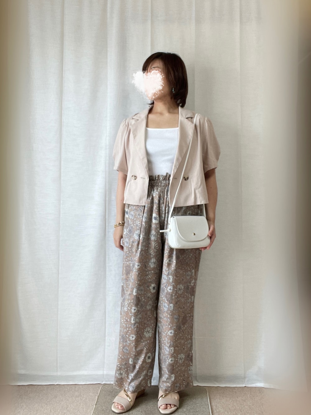 こんにちは♪見ていただき、ありがとうございます! いいね、SAVE、フォロー、とってもうれしいです♪ 前回のコーデをフォルダインしていただきありがとうございます😊 ひろ★さん✨ mic@さん✨ Mr.Mさん✨ 7月26日 ☂️☁️29℃/25℃。 雨、降っても上がってもムシムシ。 シャツジャケット×花柄パンツ。 ベージュシャツジャケット 白タンクトップ ベージュ花柄パンツ ベージュサンダル 白ミニショルダー ターコイズイヤリングを合わせました。