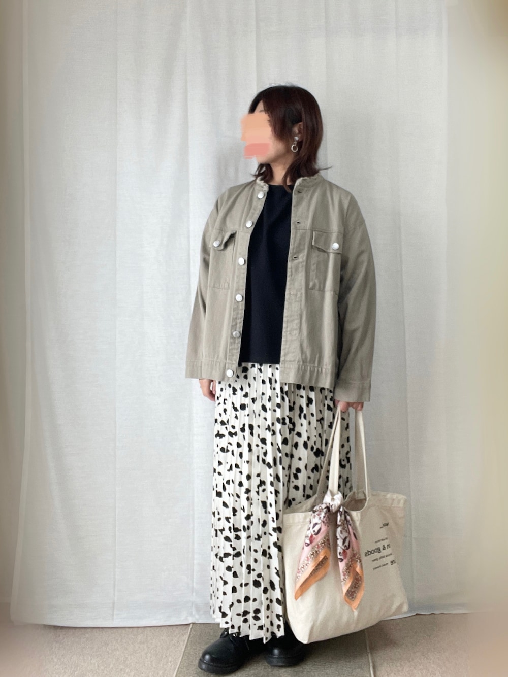 こんばんは♪見ていただき、ありがとうございます! いいね、SAVE、フォロー、とってもうれしいです♪ 前回のコーデをフォルダインしていただきありがとうございます😊 うさこちゃん✨ bochukunさん✨ masakazusandayoさん✨ ひろ★さん✨ Mr.Mさん✨ 4月19日 ⛅️25℃/19℃。 軽く汗ばむくらいの暖かさ。 黒カットソー×レオパード柄スカート。 デニムジャケットを羽織りました。 ベージュデニムジャケット 黒カットソー 白レオパード柄プリーツスカート 黒マニッシュシューズ 白トートバッグ ピンクスカーフ シルバーサークルイヤリングを合わせました。