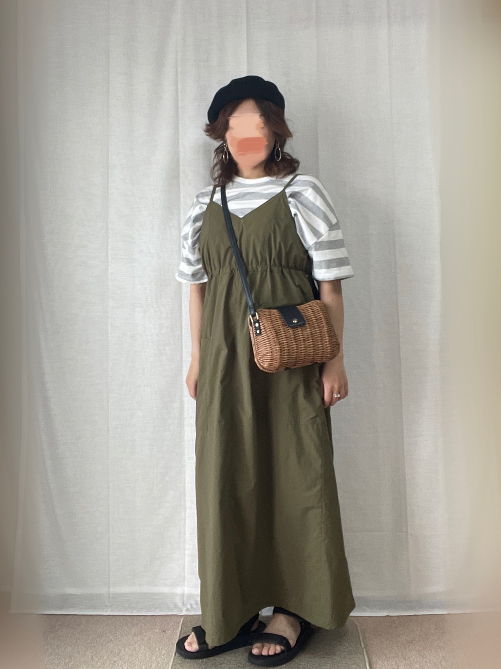 こんにちは♪見ていただき、ありがとうございます! いいね、SAVE、フォロー、とってもうれしいです♪ 前回のコーデをフォルダインしていただきありがとうございます😊 うさこちゃん✨ bochukunさん✨ gov1016さん✨ りく🎒さん✨ Genさん✨ masakazusandayoさん✨ 6月3日 ☂️→🌞25℃/18℃。 初めてのハーフマラソン大会に参加してきました。 雨の影響で電車は大幅に遅れたものの、雨に降られることなく走れました♪ でも脚が結構ヘロヘロで家に着く前に休憩😅 撮り溜めコーデ。(今日も似たようなコーデ) カーキミリタリージャンスカに太ボーダーTをイン。 カーキミリタリージャンスカ グレー×白太ボーダーT スポサン かごバッグ 黒サーモベレー ゴールドイヤリングを合わせました。