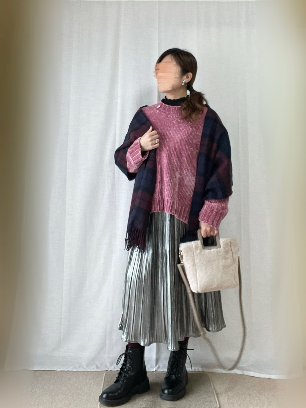 こんにちは♪見ていただき、ありがとうございます! いいね、SAVE、フォロー、とってもうれしいです♪ 前回のコーデをフォルダインしていただきありがとうございます😊 bochukunさん✨ まっちゃんさん✨ ひろ★さん✨ りく🎒さん✨ きょうちゃん✨ Genさん✨ たっくんさん✨ 1月22日 ☁️14℃/5℃。 暖かい日。 おかげさまで、指の違和感はだいぶなくなりました🍀 入力ミスが多いのであと少しな感じ。 週末にヘアチェンジしてきました。 ウルフカットをベースにレッドブラウンのカラーリング&パーマ。 JUMPフェスでマンガを振り返ってたら 幽☆遊☆白書のアニメ版の蔵馬みたいに赤くしたくなったとかならないとか。 帰りにHERBSのケーキ食べてきました♪ コーデ。 モールヤーンニットにシアードットブラウスをイン。 メタリックプリーツスカートを合わせました。 襟元にチェリーブローチ。 白ライダースジャケット ピンクモールヤーンニット 黒シアードットブラウス シルバーメタリックプリーツスカート 黒ショートブーツ ボルドータイツ ベージュファースクエアバッグ ネイビー×ボルドーチェックストール シルバー×パールチェリーブローチ メタルパールイヤリング