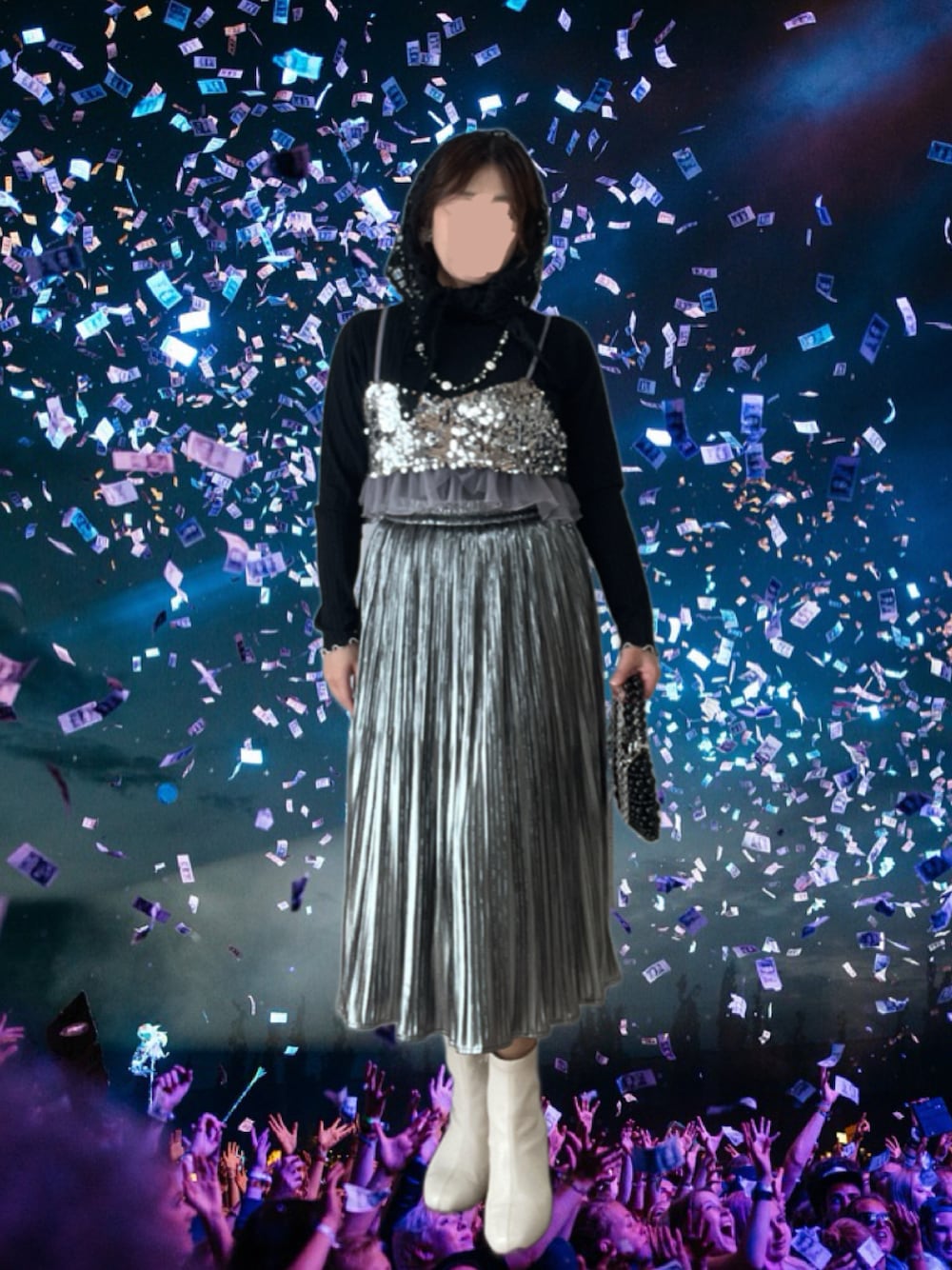 見ていただき、ありがとうございます! いいね、お気に入り、フォロー、とってもうれしいです♪ 4月6日 ⛅️18℃/9℃。 暖かい春の風。日中少しだけ雨降り。 今日は美容院にヘアチェンジしに行きました。(3枚目) 前回のパーマを活かしたカットに、シアーなグレイッシュピンクのカラーリング。 🍀さりちゃん主催「なりきりフェス」最終日。 みなさんの選んだ個性的ななりきりコーデ、すごく楽しかったです。 さりちゃん、楽しいフェスをありがとう💕 ミラーボールになりきり🪩 シルバー多めのモノトーン。クロシェスカーフをバブーシュカ風に。 物心ついたときからシャンデリアとかキラキラしたものが好きで、ホールに行くと必ず天井を眺めてたのを思い出して、やってみました。 シルバースパンコールビスチェ 黒ハイネックリブカットソー シルバーメタリックプリーツスカート 白ショートブーツ 黒2WAYミニバッグ 黒クロシェスカーフをバブーシュカ風に クリアビーズ×シェルロングネックレス シルバーパールメタルイヤリング リアルコーデではトレンチコート羽織りました。