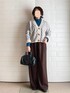 見ていただき、ありがとうございます! 1月14日 🌞11℃/1℃。 まぶしい日差し。 背景変えてみました。 淡パープル×ブルー×ブラウン。 レトロ柄ニットカーディガンにカットソーをイン。ワイドパンツを合わせました。 白ボアブルゾン パープルレトロ柄ニットカーディガン ブルーリブカットソー ブラウンタックイージーパンツ 黒ローファー 黒ミニボストン クリア×ブラウンビジューハートイヤリング