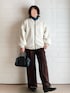 erinaのMA-1「ビッグシルエットでキマる。2wayリバーシブルサテン&ボアブルゾン」を使ったコーディネート