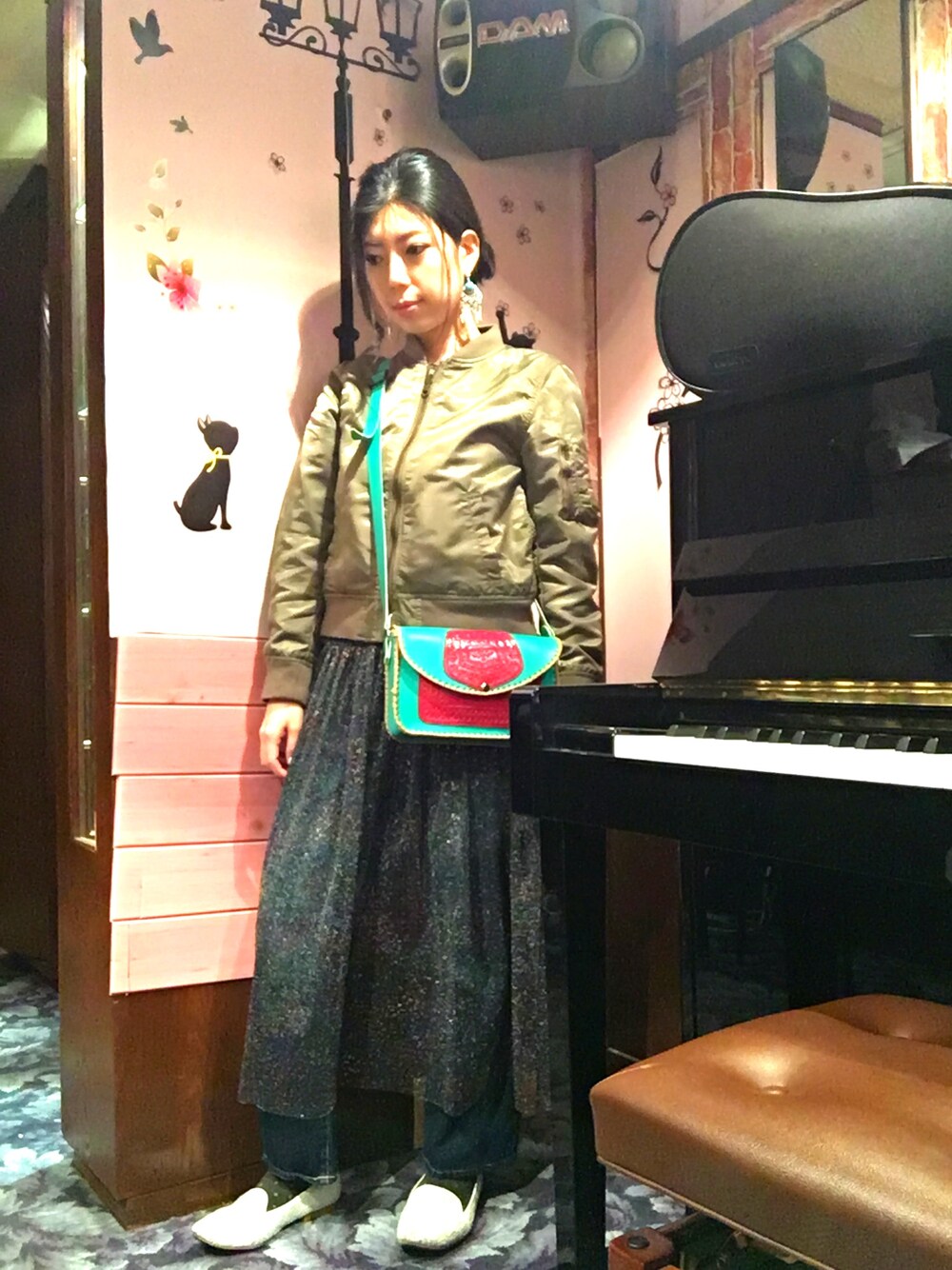 3連休その1。お店でピアノの自主練です。 バッグはキルギスのおみやげ屋さんでで購入、ピアスは民族衣裳に合わせるためにと知り合いのお母様からいただいたもらったもの。キルギスアイテムでまとめてみました。