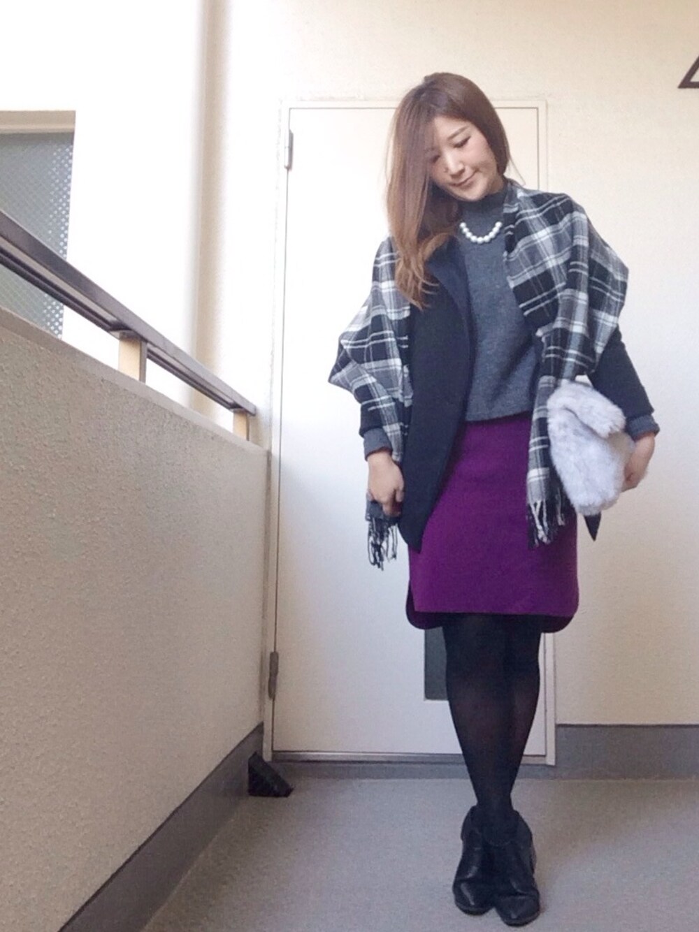 チェックのストールとファーのクラッチが主役♩ 今日は仕事が終わったらお出かけ〜*\(^o^)/* ずっと残業続きだったので明日は 引きこもって爆睡します…(・ω・)ノ