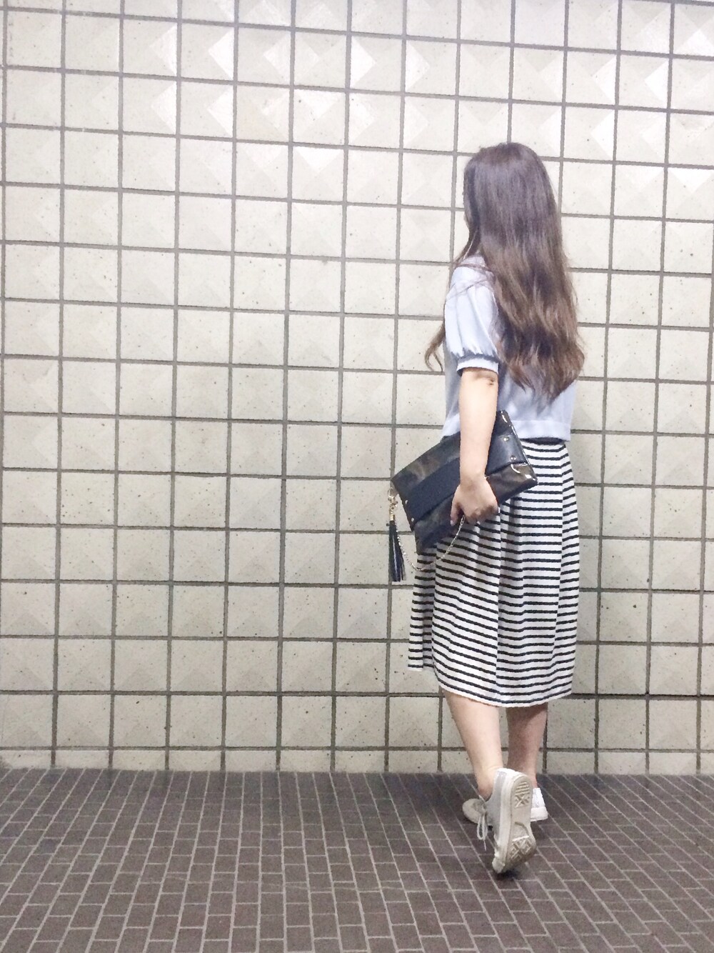 去年のAndemiuのブラウスに、ミディ丈のスカートを合わせました😊 スニーカーは、STUNNING LUREとCONVERSEのコラボ商品で、これまた去年ゲットしたアイテムです。 今年あんまりお買い物してないかもっ💦💦