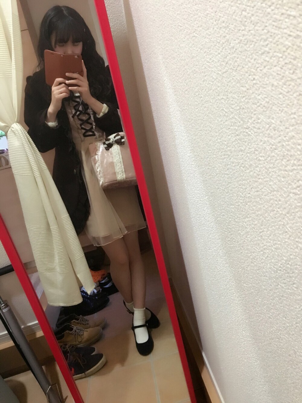 ピンクのチュールスカートがお気に入り カバンもコートも靴も全部 axes femmeです。