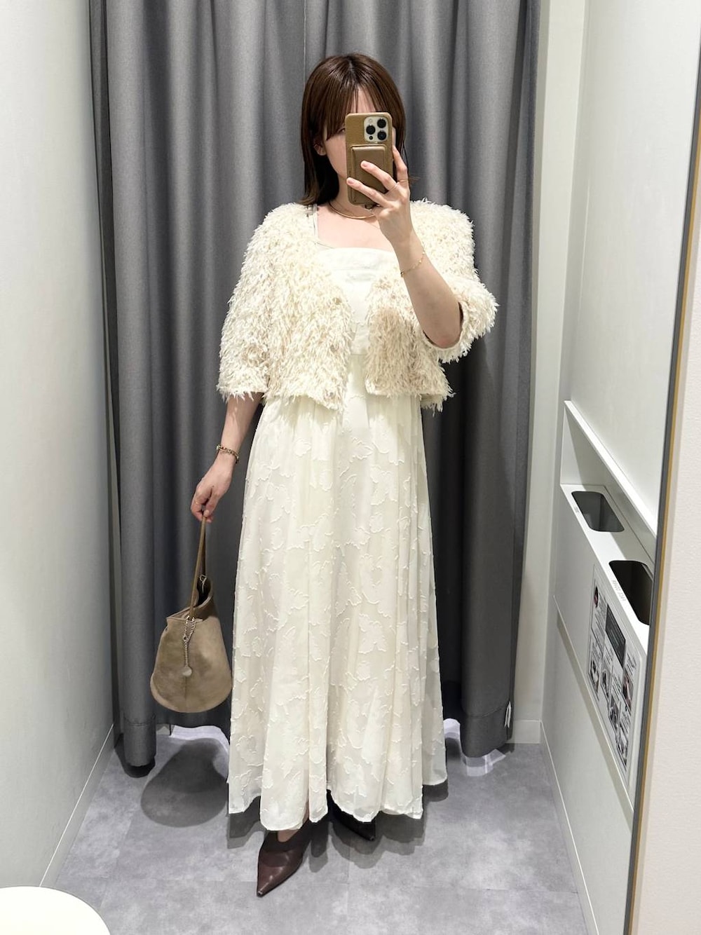 【ワンピース】 キャミワンピ×シャツがおしゃれなセットワンピ✨ 今回はワンピースを着回してみました。 キャミワンピースは長さ調整可能で153cmでも フラットシューズで着やすかったです。 程よくシアー感のあるジャガード柄で 1枚でおしゃれに決まります! 普段使い〜お呼ばれコーデにもおすすめ。 【カーディガン】 ふわふわ毛足が秋らしいフラッフィーカーディガン。 秋のトレンドデザインですが、 素材は通気性がよく気温が高い時期から楽しめます。 Vネックとスッキリした丈感で着膨れしにくいです。 二の腕がしっかり隠れる袖感も嬉しいポイント。