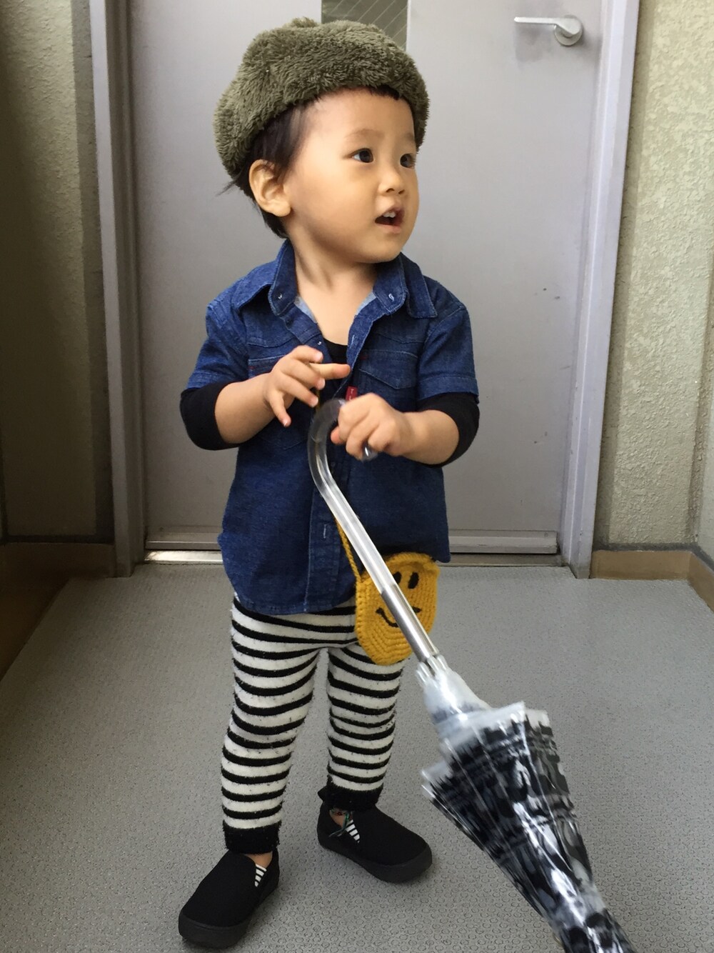 傘遊びシリーズ(^^)また傘で遊ぶ息子◎