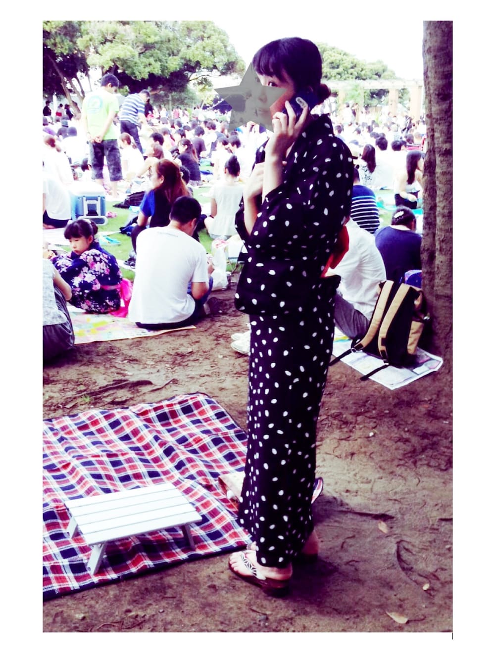 花火大会。 夏の始まりってなんか好き。 浴衣はドットに見えて、桜の花びらってところが好き。 大人になってから、派手な色や柄よりシンプルなもののほうが好き。