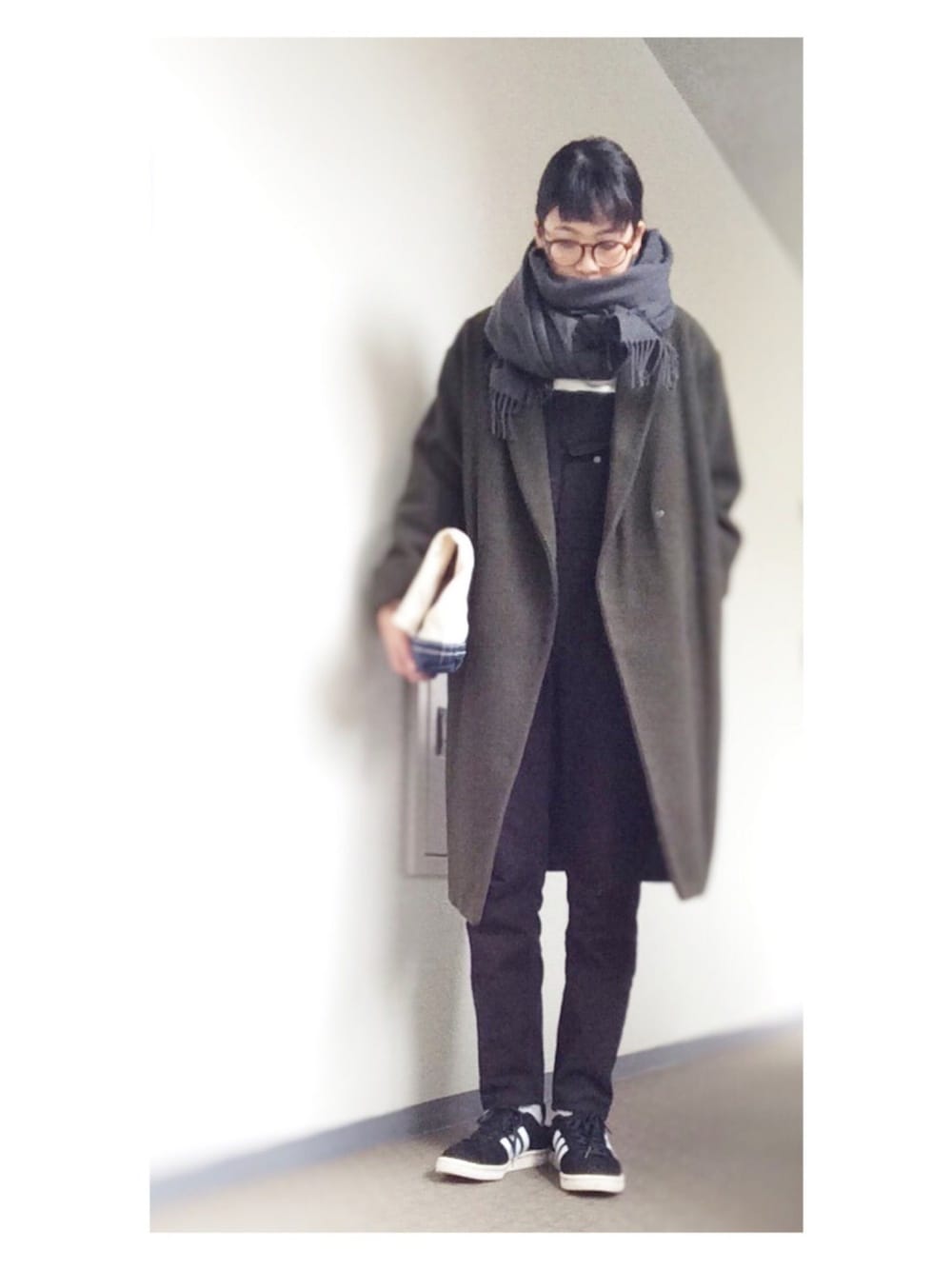 昨晩、手巻き寿司パーティー🍣 楽なオーバーオールにスナフキンコート🍂 おじさんカラー大好きです。 渋めのカラーリングでおじコーデ🙌🏻