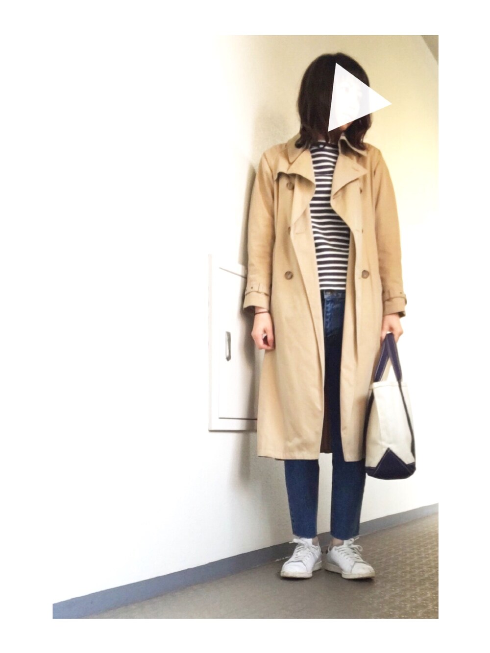 何でもない、ただのお休みはシンプルにトレンチ+ボーダー+デニムとゆるく定番ものに頼りがち。 デニムは昨晩、ロールアップしてもいいけど今のトレンドを意識してざくざく丈をカットオフ!! 特別じゃないゆるめのシンプルでラフなスタイルが一番しっくりきたりする(。-∀-。)