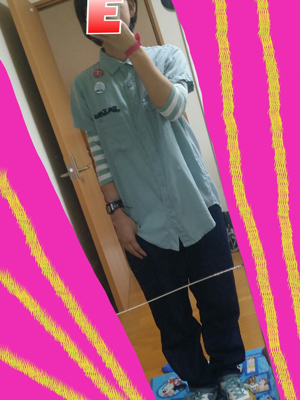 オーバーサイズは絶対たるたるで着たいので、 たるたるでメンズっぽく! シャツはチャオパニックのお気に入り! ニューバラもだいぶ使い込んだなー!(^_^)