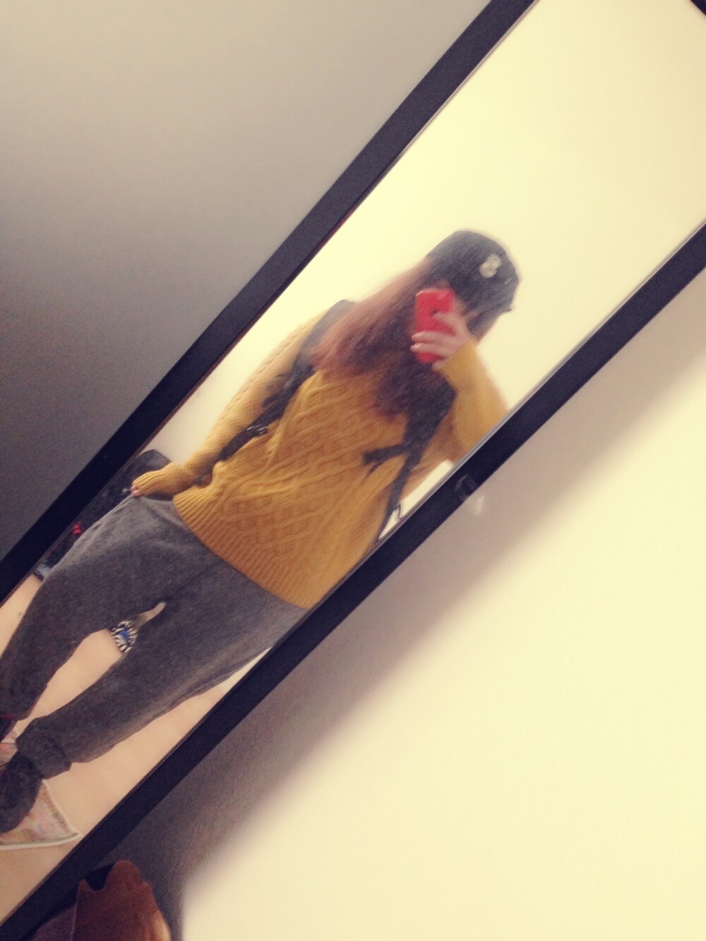 お久しぶりのコーデ投稿( ¨̮ ) からし色ニットはお気に入りです( ᵕᴗᵕ ) おじパンは900円で もう6年も履いてます。