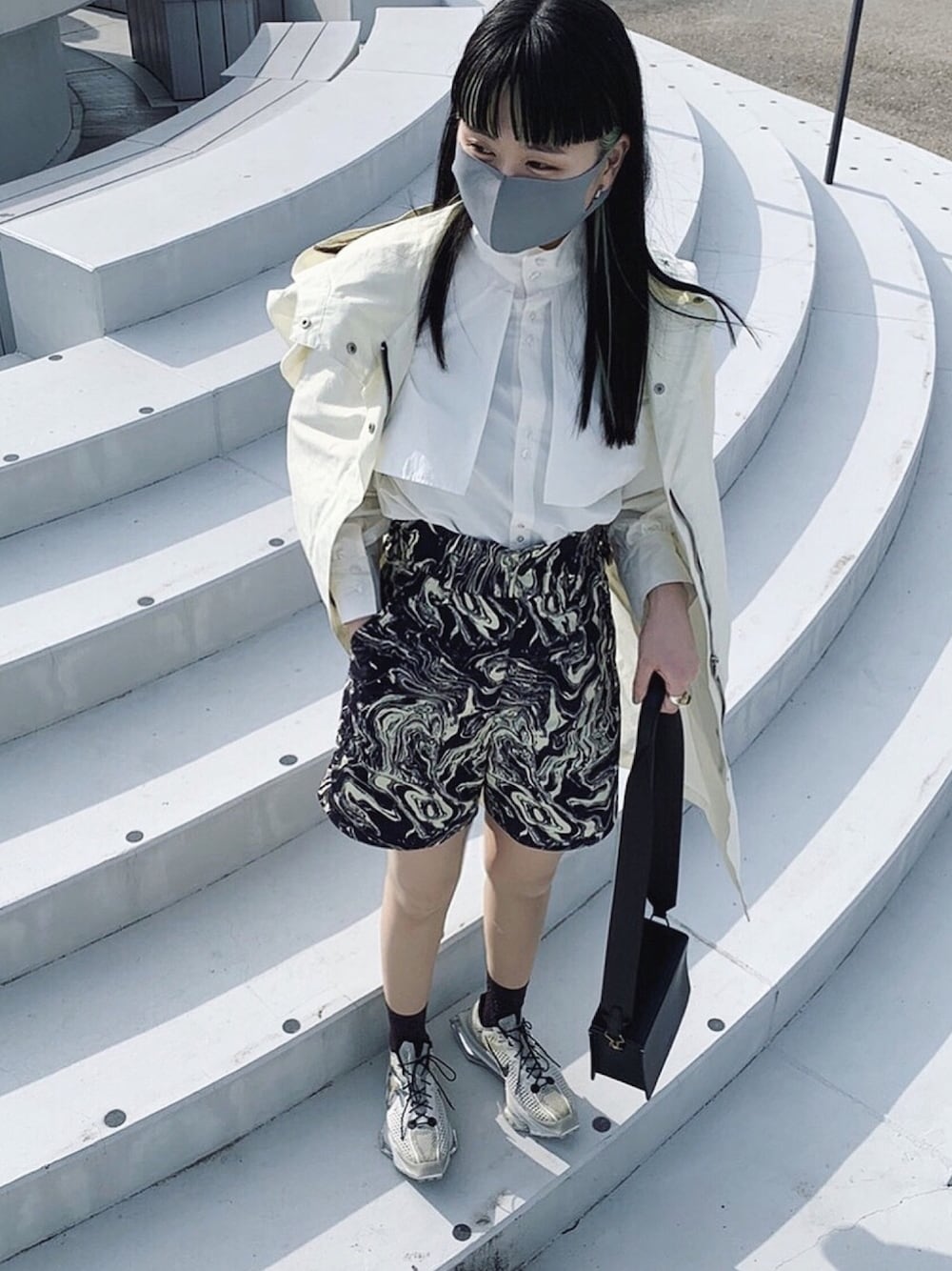 TOGAのショートパンツいいアクセントになって飽きがこないなぁ〜😊 マシューも合うしお気に入りコーデ👯♀️