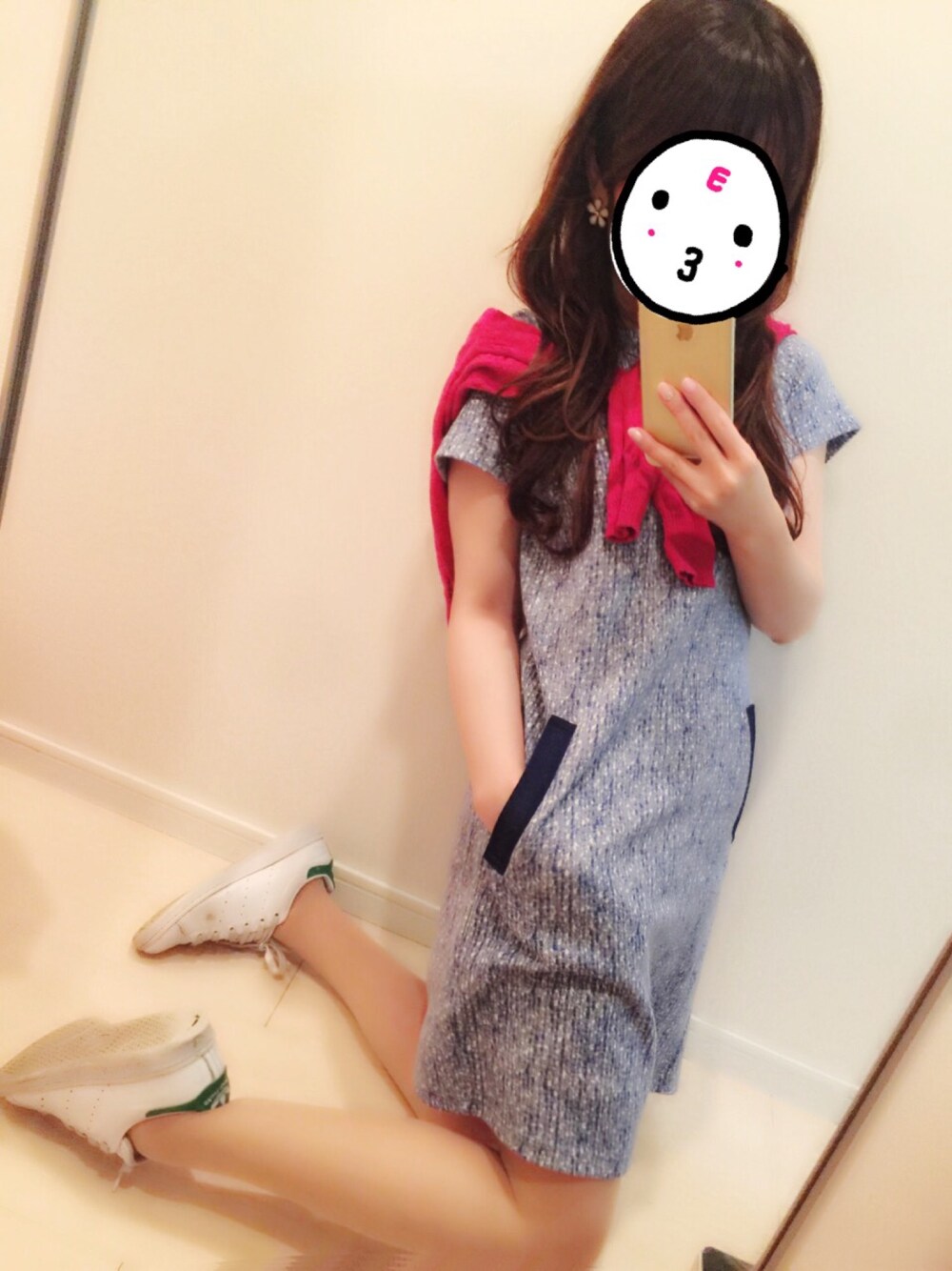 だまし絵ツイードも 青だったら爽やかで良いでしょ? まだありだよね?笑 久々に女子コーデ‼︎ でも、ヒール履くと転ぶからスニーカーw こんな女子じゃ だめですか(´・Д・)?