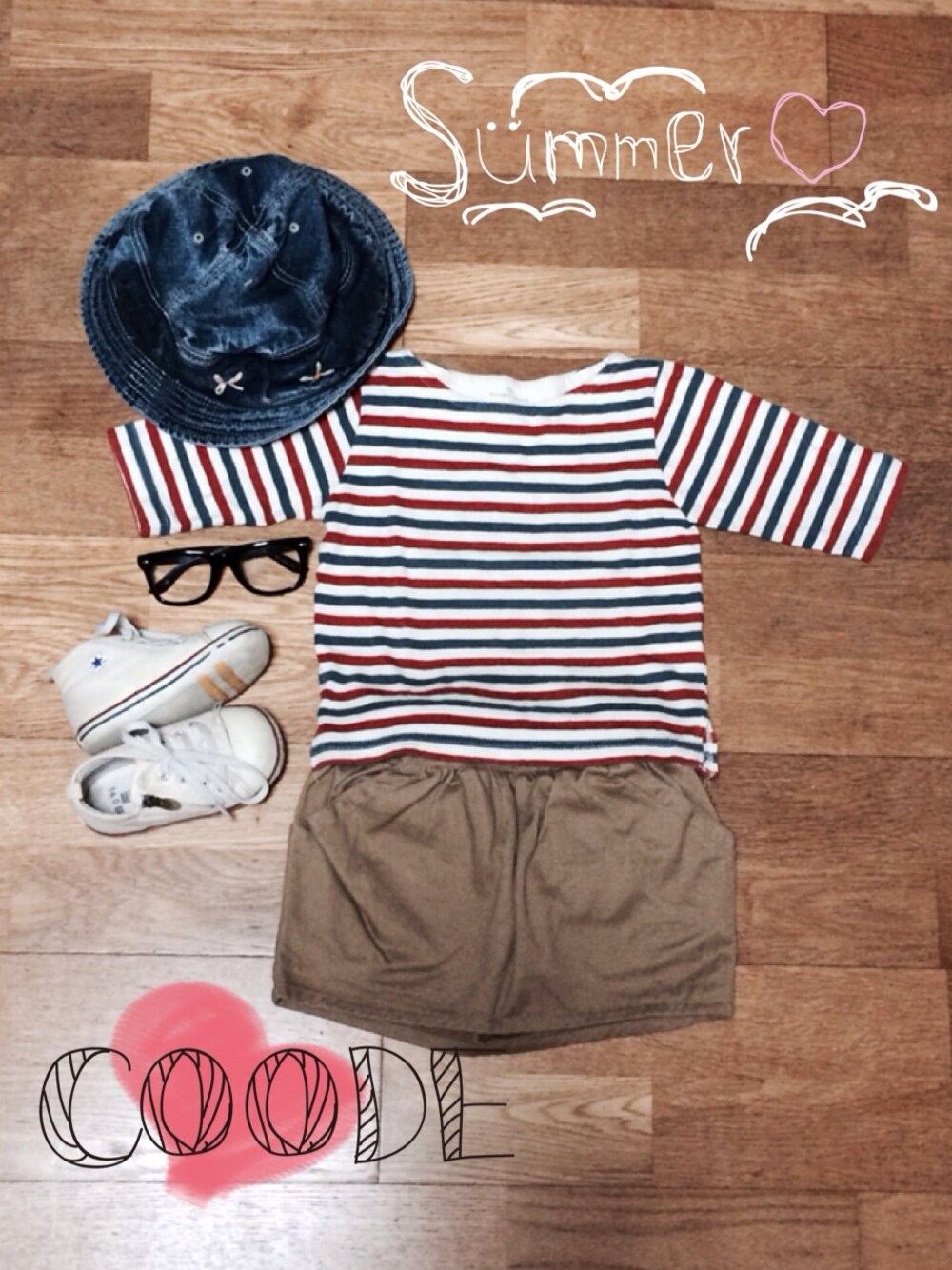 トップス:GLOBAL WORK スカート:GLOBAL WORK シューズ:CONVERSE キャンプ:D.M.G