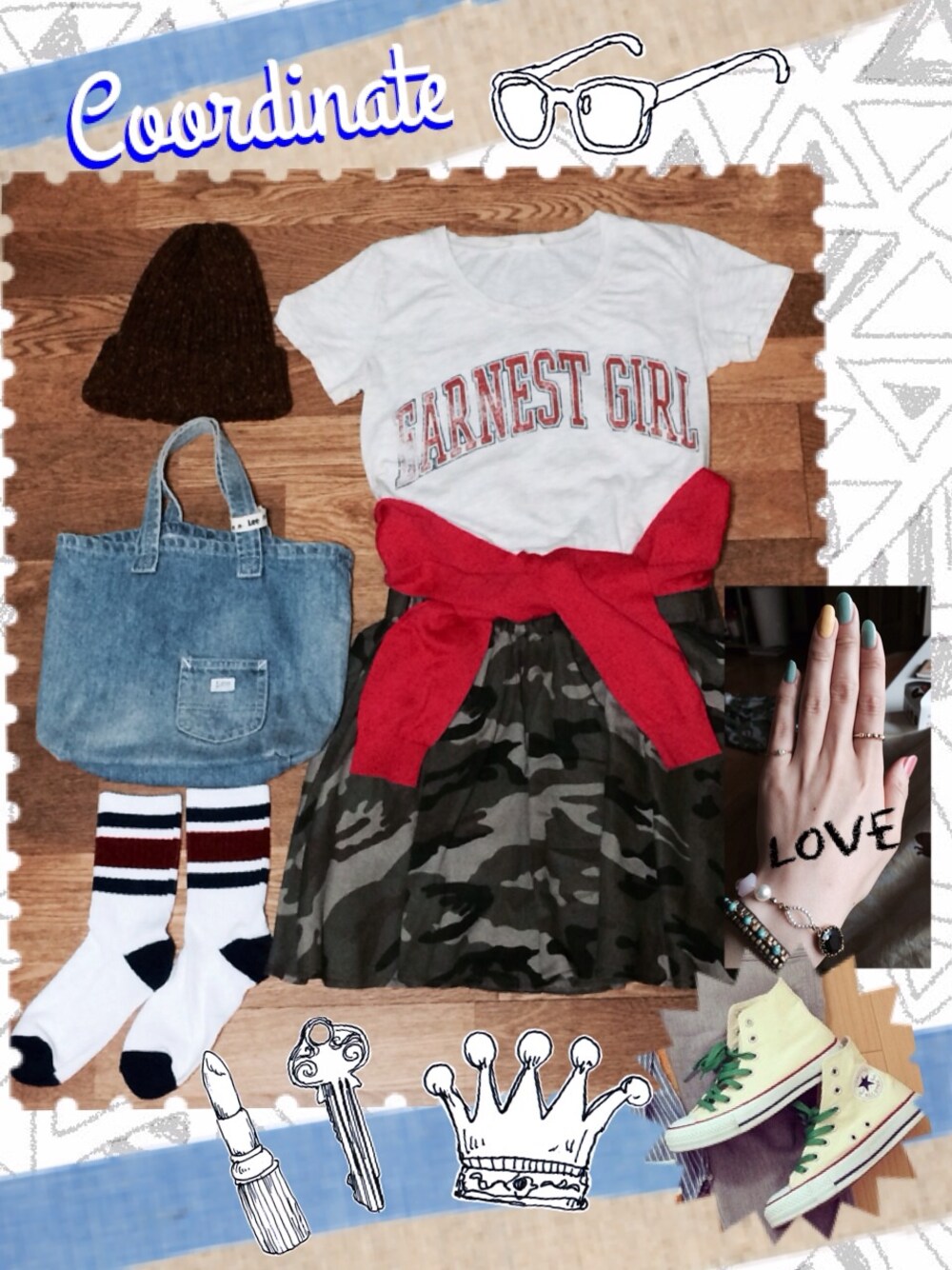 mama code*\(^o^)/* プチプラ♡ トップス:GU スカート:しまむら 靴下:しまむら カーディガン:UNIQLO バッグ:Lee