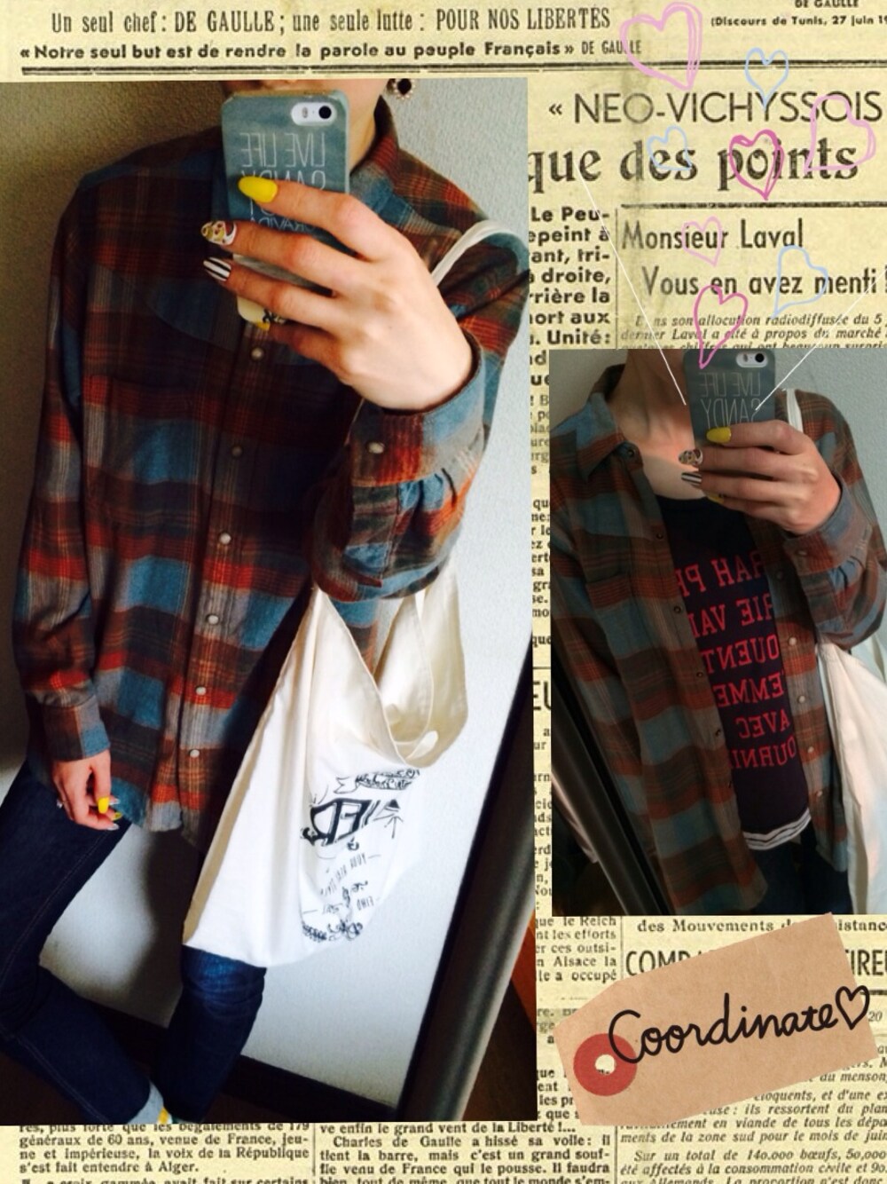 erion➕risei♡のシャツ/ブラウス「ヴィンテージチェックシャツ:ungrid」を使ったコーディネート