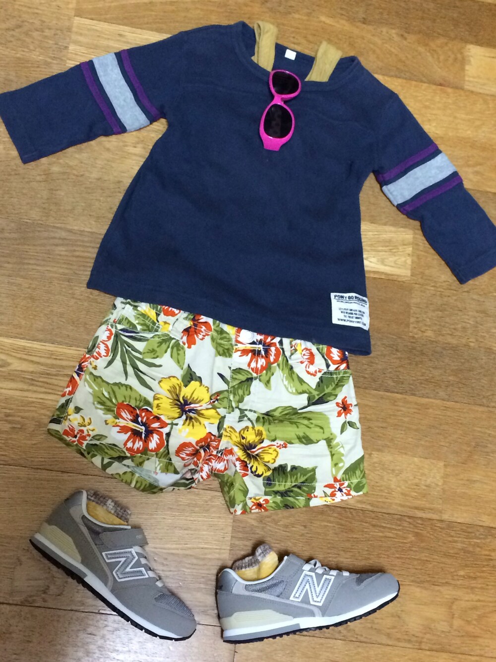 トップス:PONY GO ROUND インナー:? パンツ:西松屋 シューズ:ニューバランス サングラス:ムラスポ