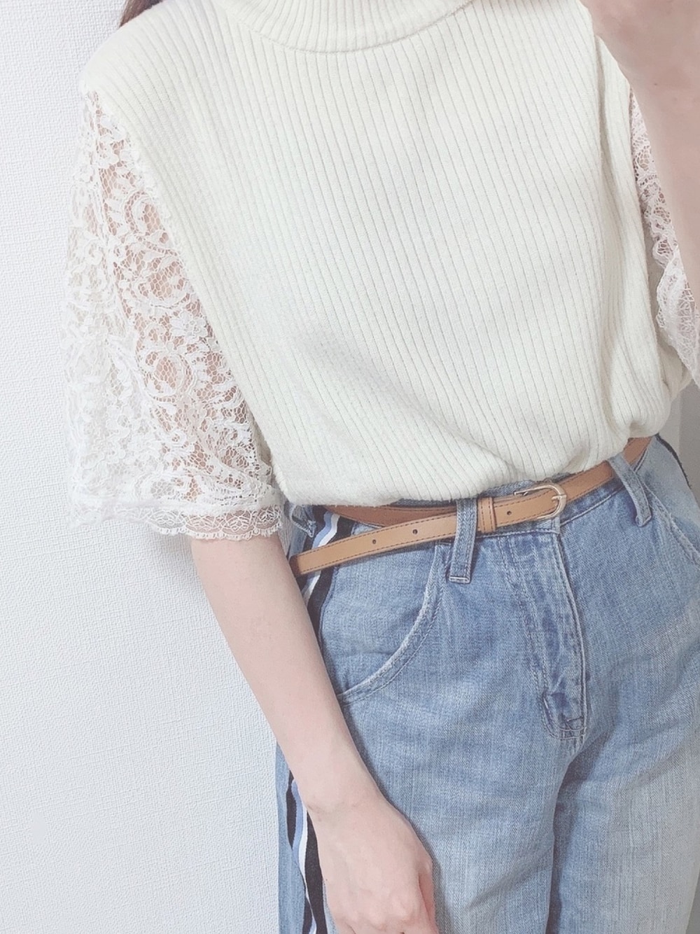 maruのデニムパンツ「ラインワイドデニムパンツ」を使ったコーディネート