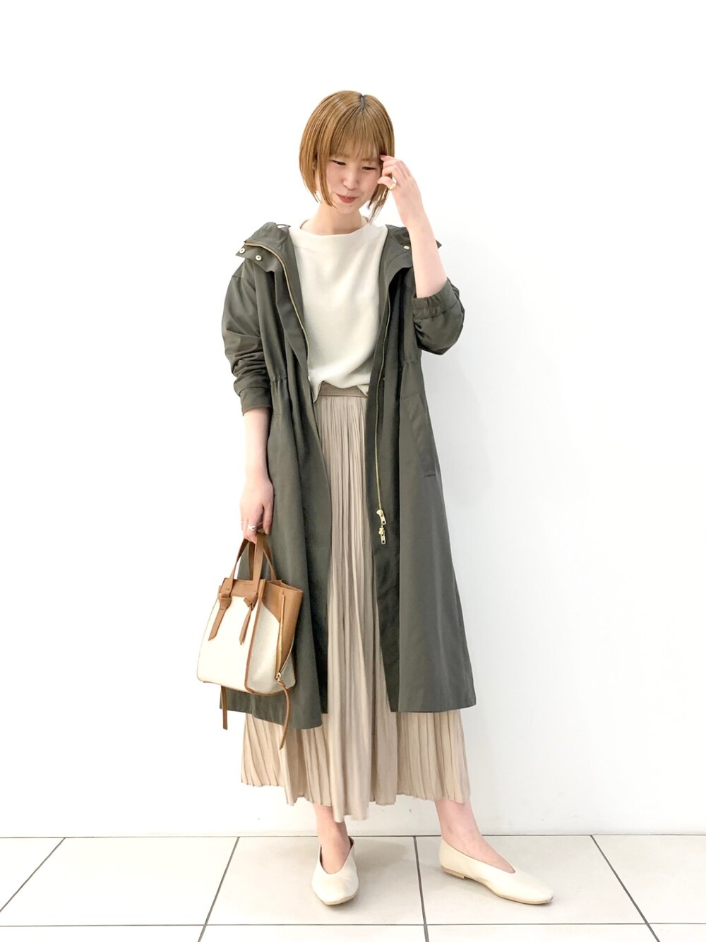カジュアルアウターをゆるっと♡ ウエストギャザーがかわいいです🌿