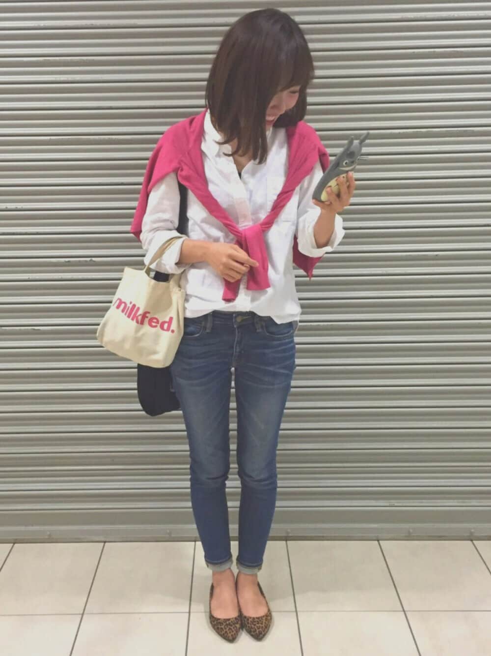 ⋆⋆⋆⋆⋆✭⋆⋆⋆⋆⋆ 今日はちょっと大人を意識して コーデしました💗 白シャツデニムの組み合わせは本当に大好き! 朝迷ったら大体デニムに何かを合わせちゃいます👖 デニム大好き人間👖💘 無印のスーパーストレッチスキニー アンクル丈が 本当に本当に履きやすいし丈感も本当に 自分の中でベストだし、何よりサイズが本当に ぴったりでいい感じです💓 いままで、自分に合うデニムに出会ったことが、なかったから嬉しさのあまり色ち買いして ワンウォッシュバージョンも 買っちゃいました❤️笑 今日は白シャツも無印だし全身ほぼ無印コーデ💭 最近、お母さんが買ってくれた グローバルワークのレオパードパンプスが シンプルコーデの時には大活躍❤️🐆 足元にレオパード持ってくると大人感が さらに出る気がしてお気に入りです💓 (思い込み笑) パンプスは中がクッション性があって たくさん歩いても全然痛くならなくて 本当にいい仕事してくれます❣️ お母さんに感謝💓 ⋆⋆⋆⋆⋆✭⋆⋆⋆⋆⋆