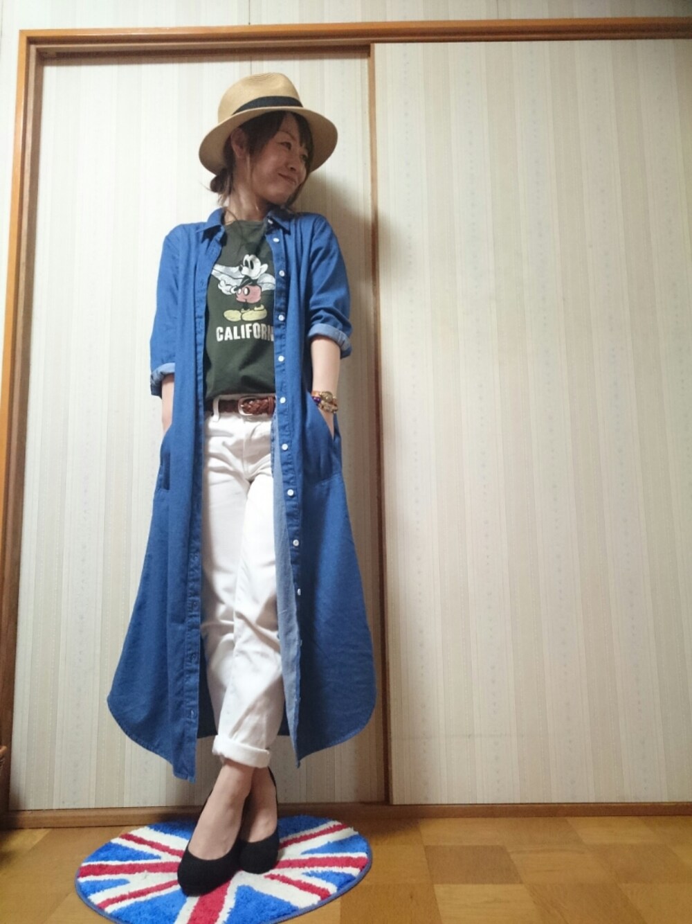 こんばんは~🐝🐝 本日のお仕事コーデです!! 年甲斐もなくミッキーマウス♥🐭♥ でも、色がカーキで大人っぽく着れるので意外とお気に入りです😂 でもアラサーがミッキーって…大丈夫なんで