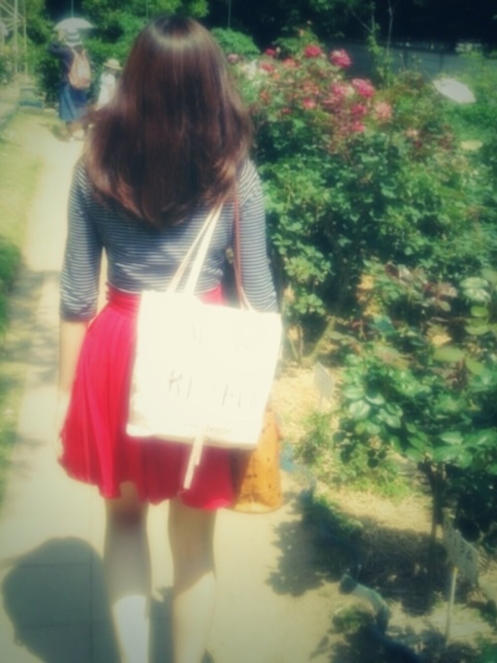 鎌倉バラ園にて。 お弁当作ってみんなでピクニック ☆*:. このワンピースは一年前くらいに リーファで一目惚れ(´-`)♡