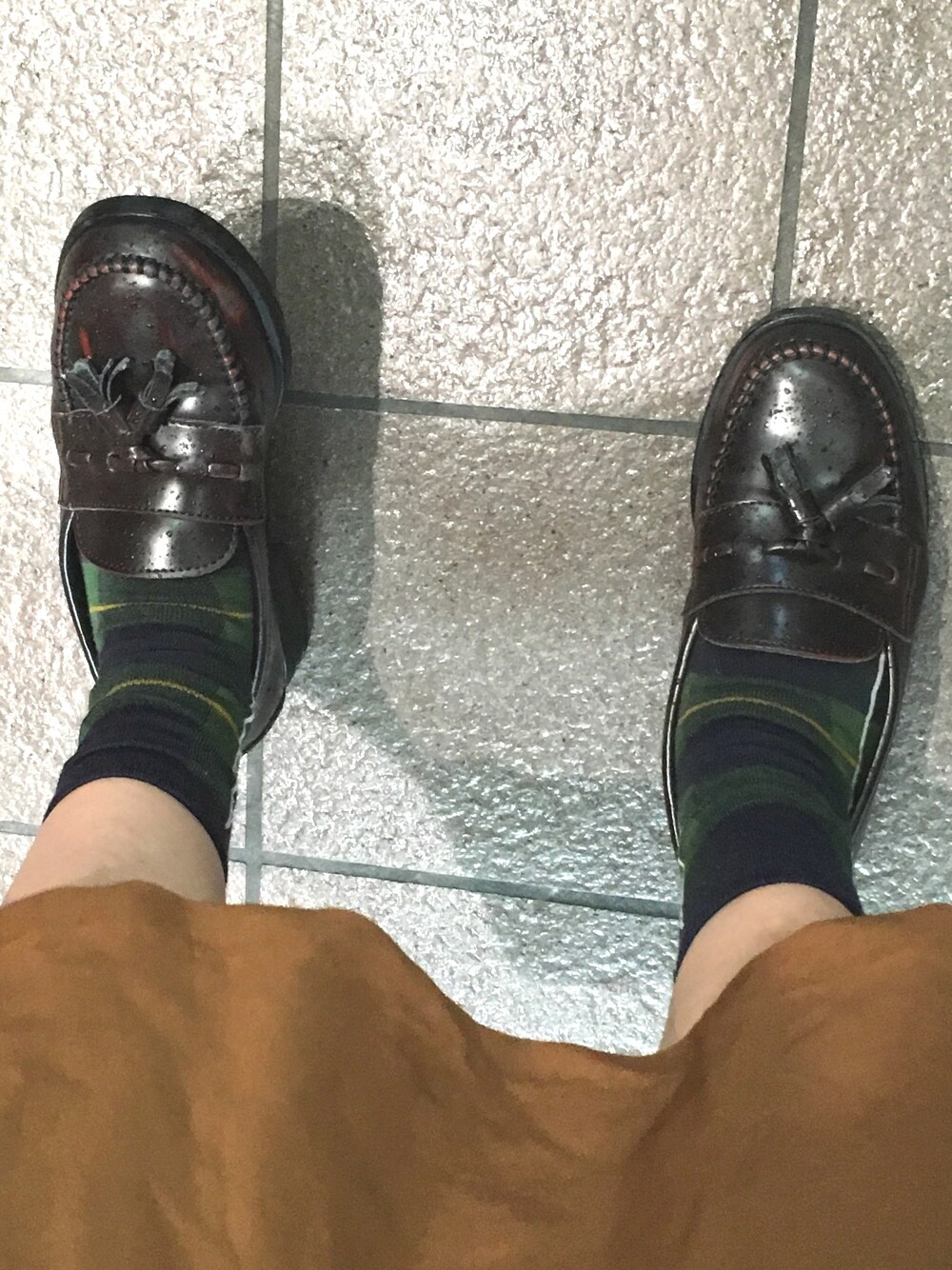 高校生のときのローファー グリーンのチェック靴下と合わせて 秋もーどです🍂
