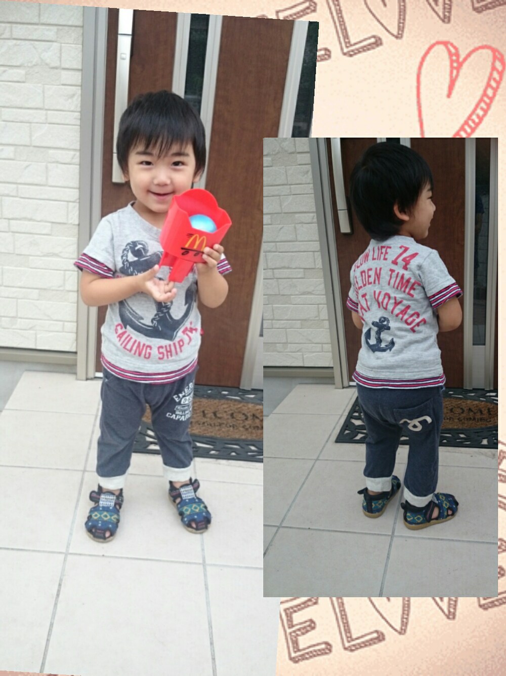 寝すぎて片目一重のうえ、ボールをmamaに投げようかと企んでるやんちゃboy( ̄▽ ̄;)笑 ✾らくちんコーデ