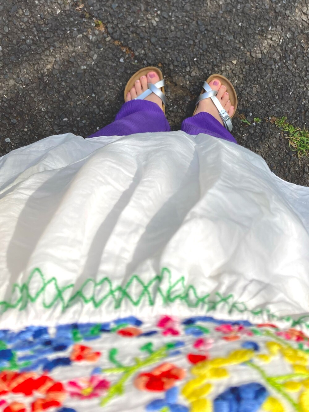 刺繍のキャミワンピは10年以上前に地元のOPAのギャルショップで3000円くらいで買ったもの。刺繍が可愛くて気に入っていて毎年暑くなると着てる。キャミワンピだから色々な着方ができて便利だし、好きな服って値段関係なく何年経ってもずっと好きなのね〜。見えないけど今日はユニクロの白Tと合わせています☺︎