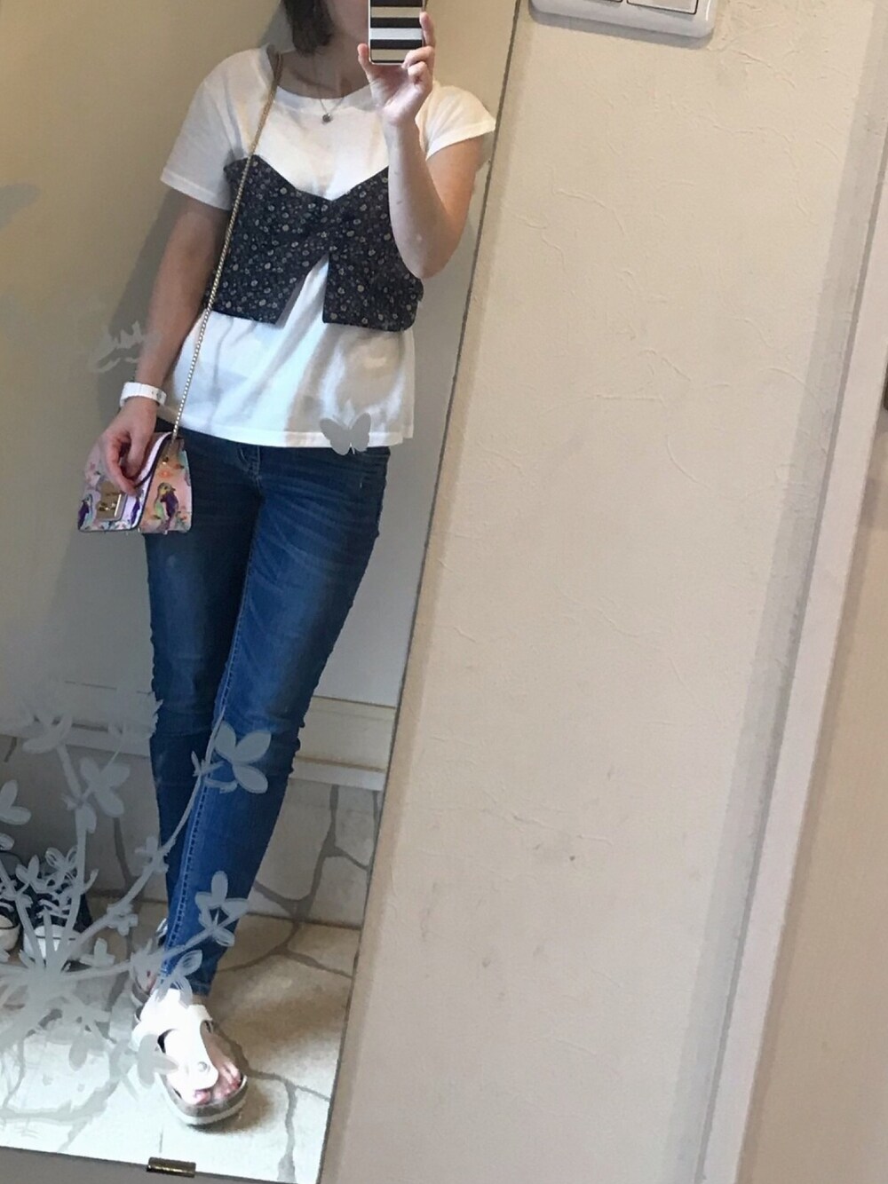 今日は七夕様🎋 昨日色違いで買ったしまむらのビスチェTを着て宝くじでも買おうかな❤️