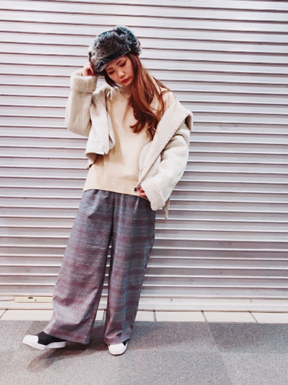 いつも見てくださりありがとうございますです。 予約時から大人気のコーデ。 モチモチニット×チェックワイドパンツ。 さらにムートン素材のジャケットを合わせて寒さ対策バッチリです✨ いいね、save、フォロー。 本当にありがとうございますです。 これからもよろしくどうぞです。♥️🐻