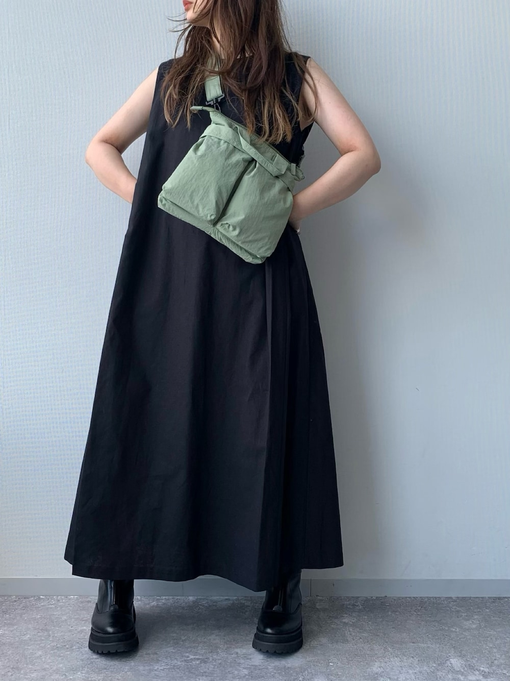 このコーデは個人的に大好きです♡ ボリュームのあるノースリーブワンピースに ゴツメのブーツを合わせるのが◎! Instagram→@eritis ※ 撮影場所の明るさなどにより、色味が若干異なっている事がございます。 カラーは公式サイトでお確かめください!