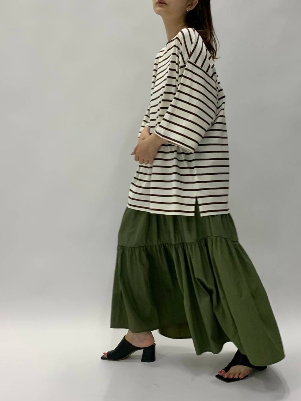 メンズのボーダーTシャツ。 ボリュームのあるスカート合わせで 女性らしいスタイルが◎! Instagram→@eritis ※ 撮影場所の明るさなどにより、色味が若干異なっている事がございます。 カラーは公式サイトでお確かめください!